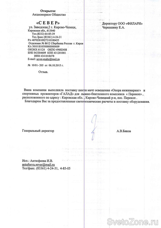 В 2014 году специалистами светотехнической компании "Филари" был разработан светотехнический проект освещения биатлонного комплекса "Перекоп" в г. Кирово-Чепецк. В настоящий момент проект реализован, фактические параметры соответствуют проектным. |