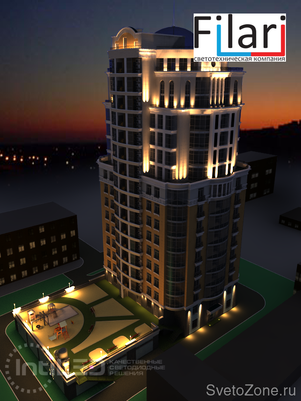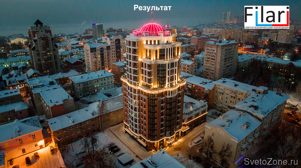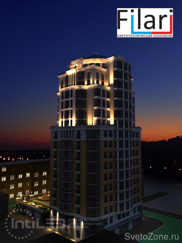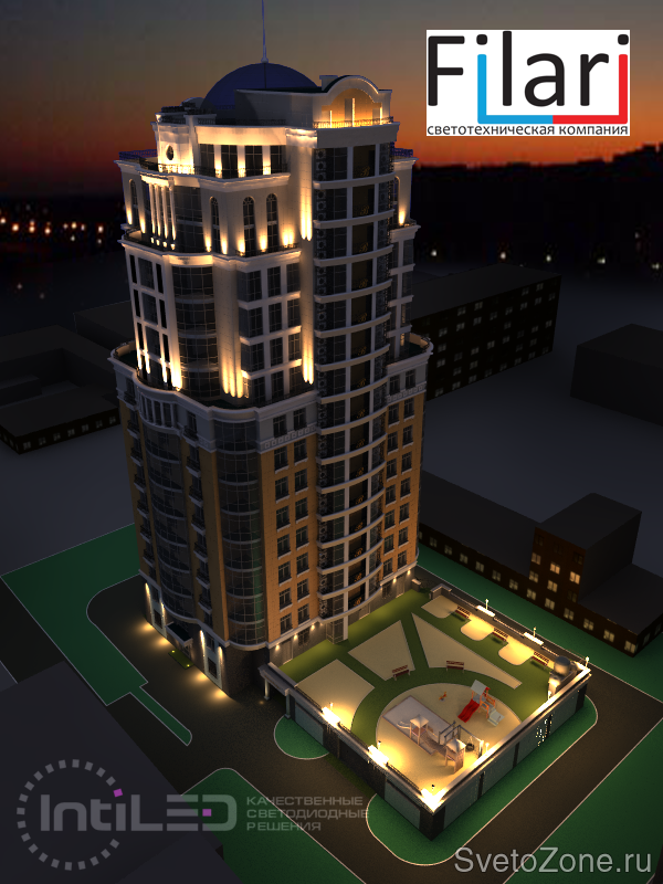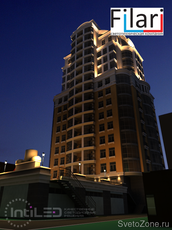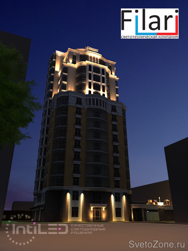 В 2013 году специалистами светотехнической компании "Филари" была разработана концепция архитектурной подсветки Жилого дома в г. Перми по адресу г. Пермь, ул. Луначарского 32а. После чего выполнены проекты работы по архитектурной подсветке здания, стадия П и Р. В 2015 проект реализован, фактические параметры соответствуют проектным. |