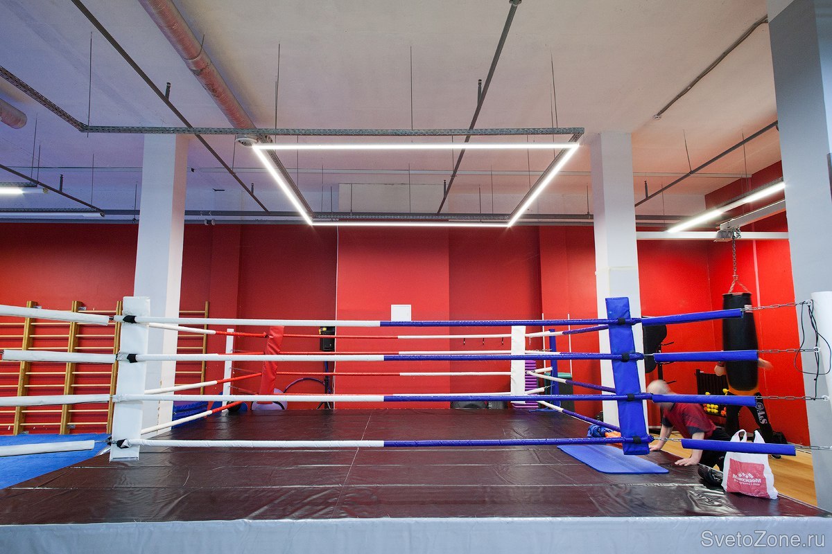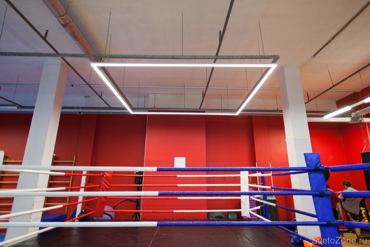 Компанией "Дарнова" было выполнено проектирование и осуществлен монтаж светодиодной конструкции для освещения боксерского ринга. Светильник изготовлен на базе анодированного алюминиевого профиля размером 3х3х0,35м.