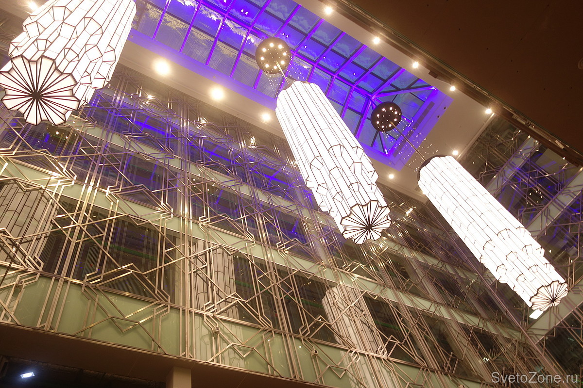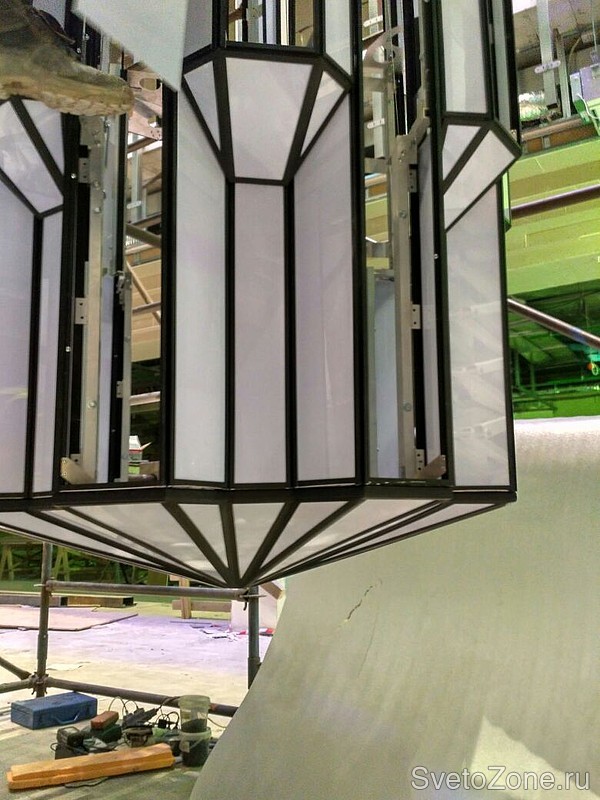 Изготовление трех светильников для атриума бизнес центра «FORT TOWER» Размеры каждого светильник: 17300 х 2100 мм, Вес более 600 кг.