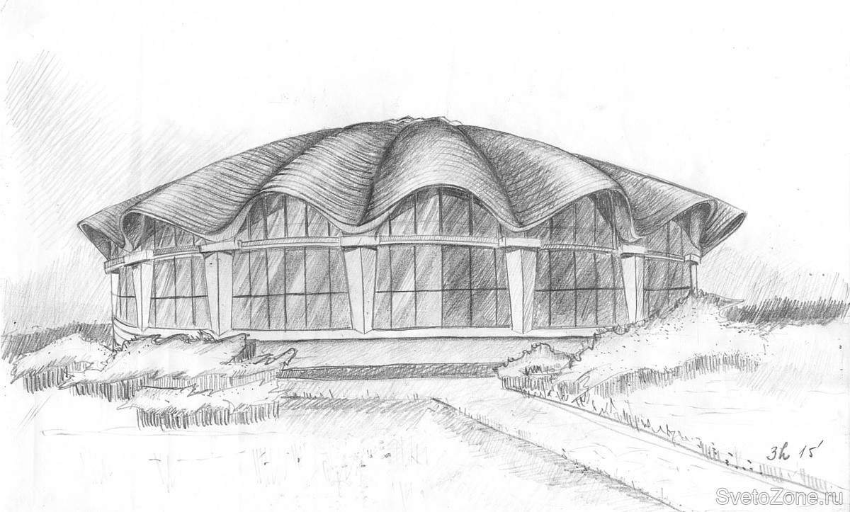 Круглое по форме сооружение, с волнообразной по форме крышей, расположено в замечательном парке рядом с небольшим декоративным прудом, вмещает 3500 зрителей и оборудовано вольерами для содержания животных.