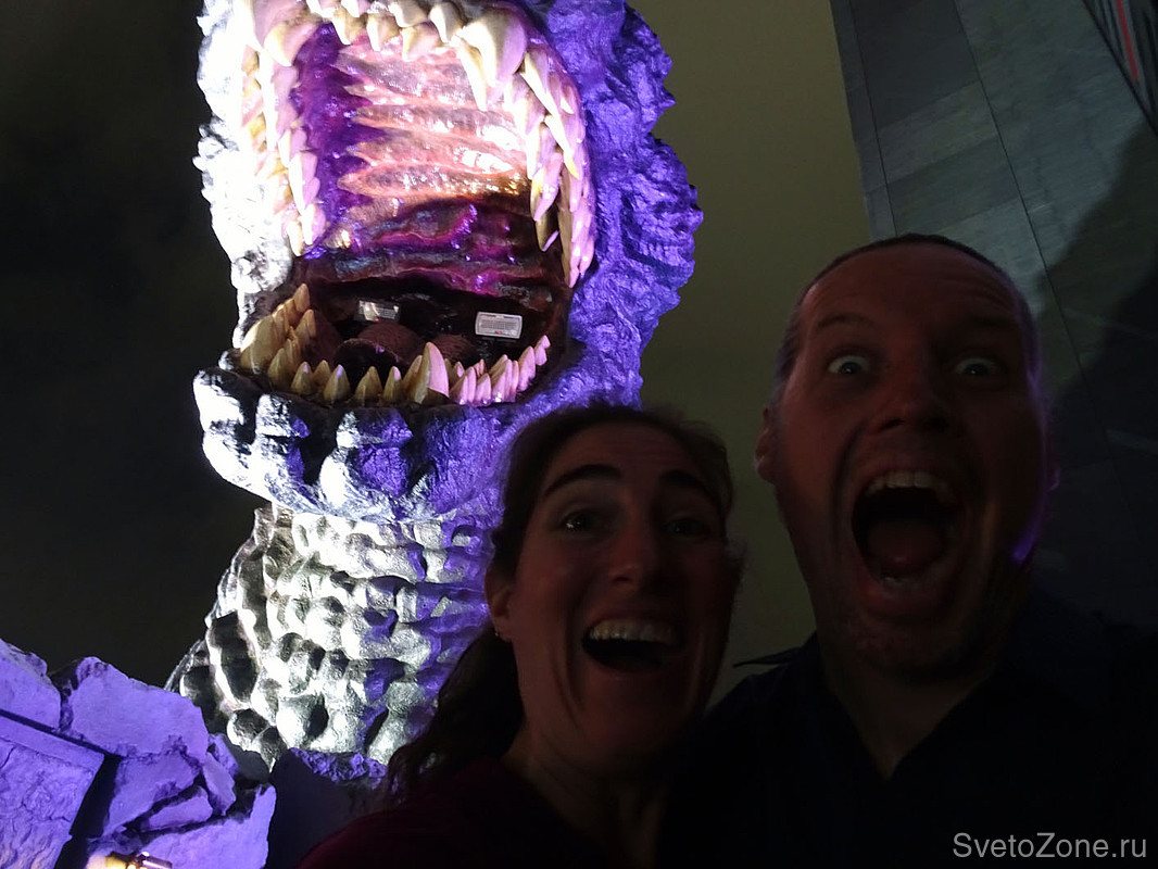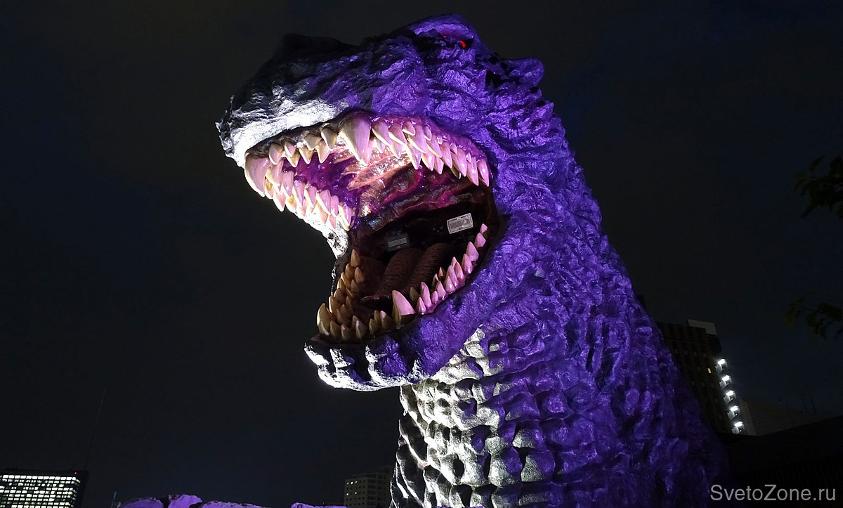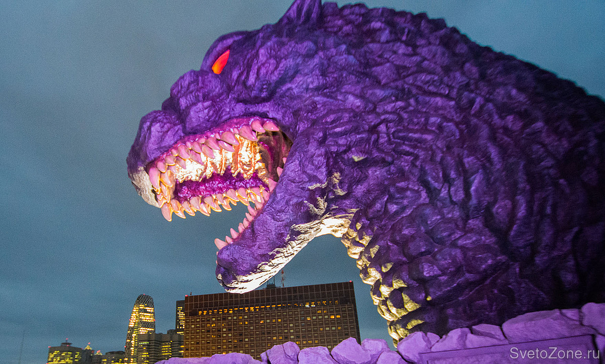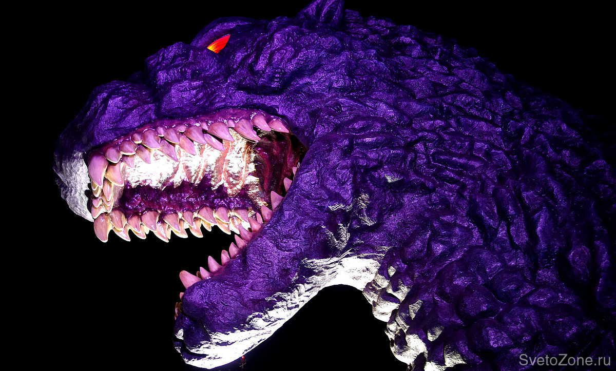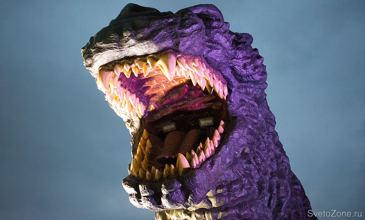 Чудеса, касающиеся освещения пасти Годзиллы, цветного дыма, вырывающегося из пасти, и собственно самой головы, реализованы с использованием светодиодных световых приборов GRIVEN: EMERALD RGBW, JADE 16 RGBW,