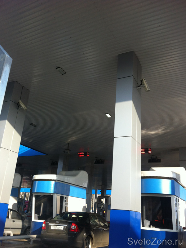 Для организации освещения навеса пунктов заказчику ООО «Автодор-Платные Дороги» были предложены светильники УСС-36. Данные светильники установлены на нескольких пунктах по типовому проекту.