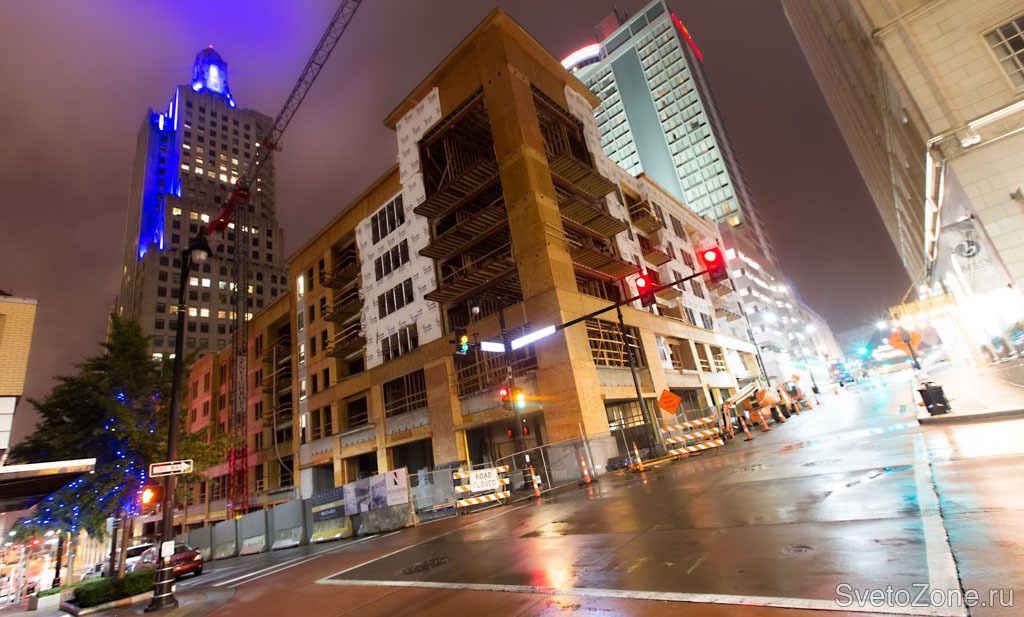 Недавняя реконструкция также коснулась переоборудования осветительной установки. Новая система выгодно подчеркивает здание на фоне городской застройки и позволяет окрашивать фасады в желаемые цвета.