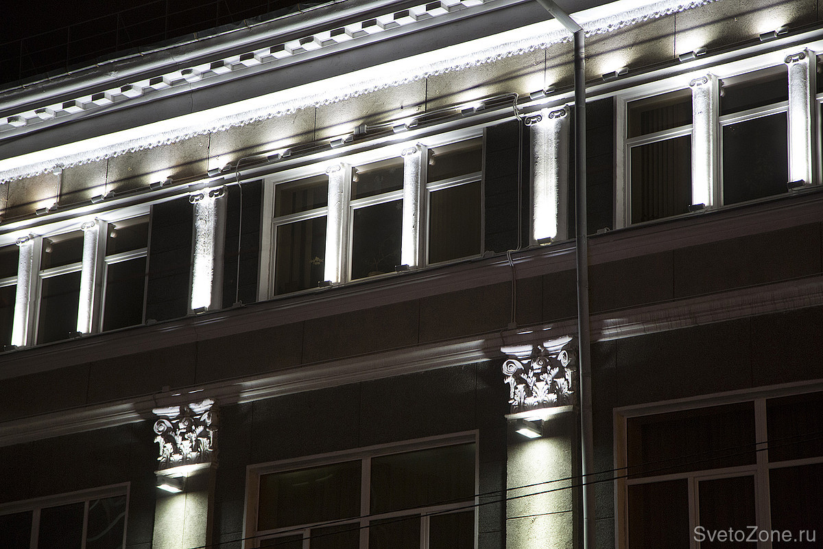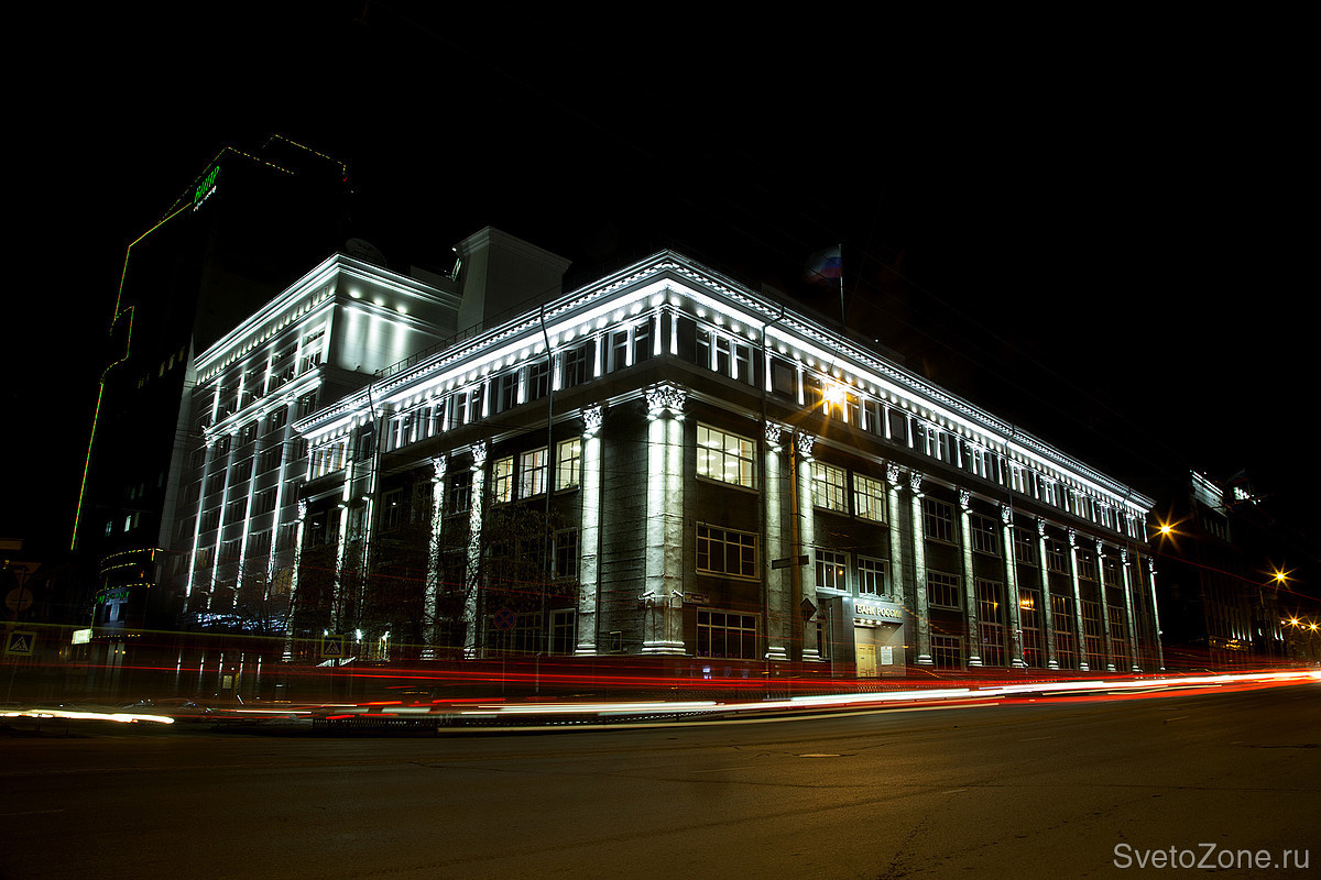 Совместная работа технических специалистов, дизайнеров, инжиниринговой группы и монтажной организации позволило создать привлекательное Архитектурное освещение исторического фасада ГУ Центрального банка РФ и гармонично вписать его в ансамбль ночного города.
