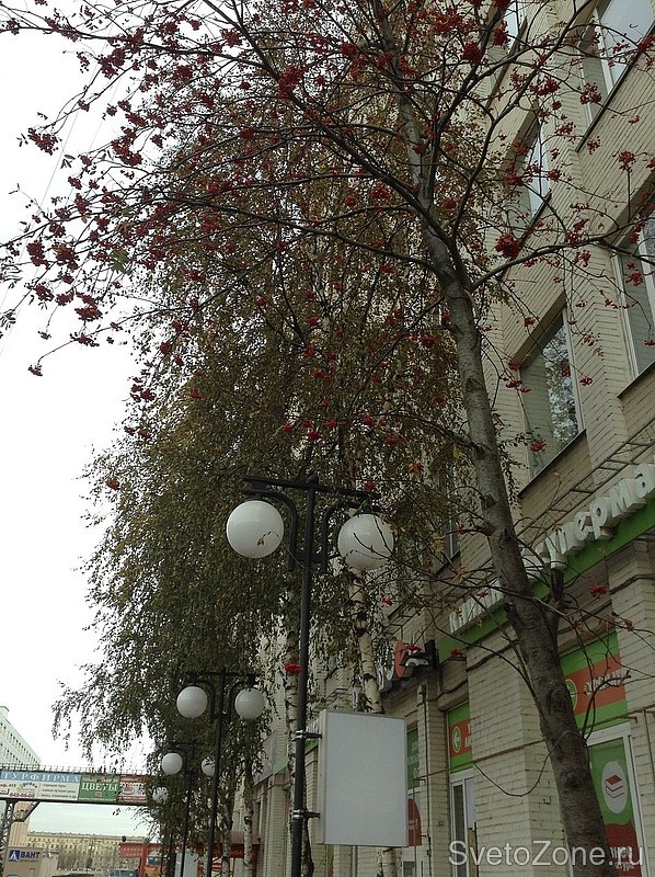 На пешеходной зоне вдоль проспекта Обуховской обороны были установленны стальные торшеры нашего производства