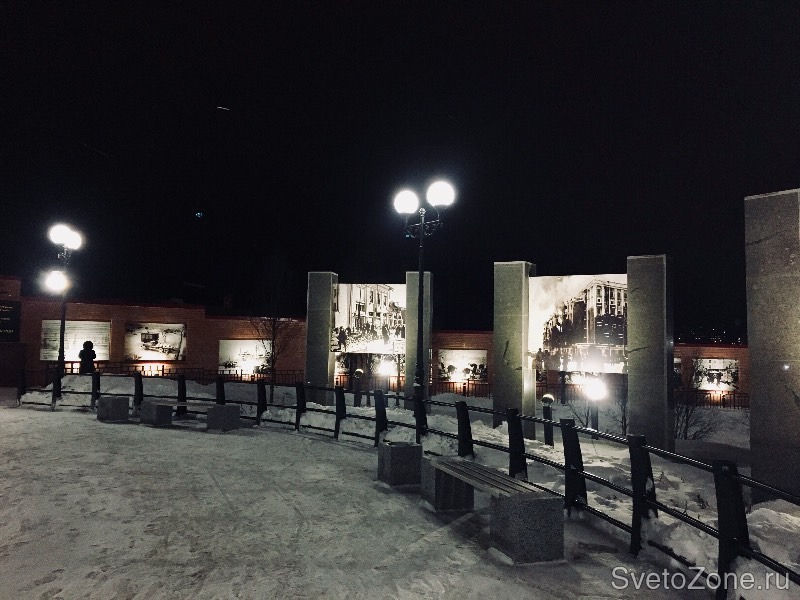 Задача проекта заключалась в том, чтобы мемориал, расположенный на берегу Семеновского озера, выделить в ландшафте и сделать его визуально привлекательным в вечернее и ночное время.