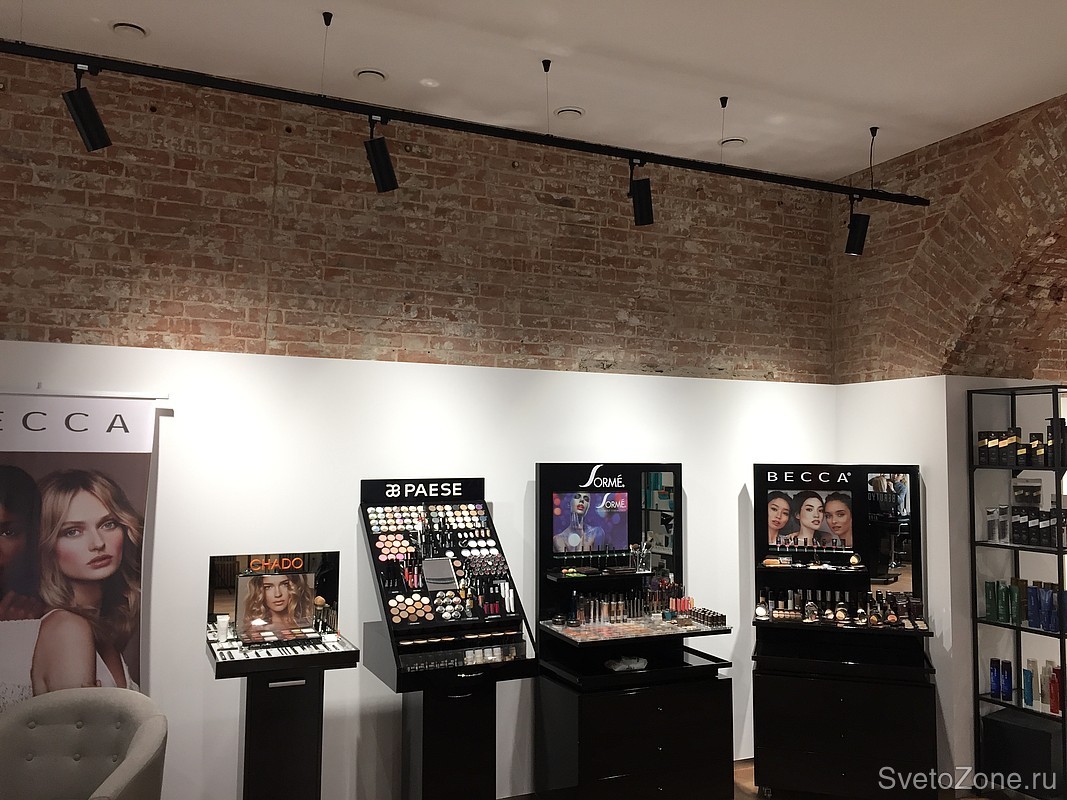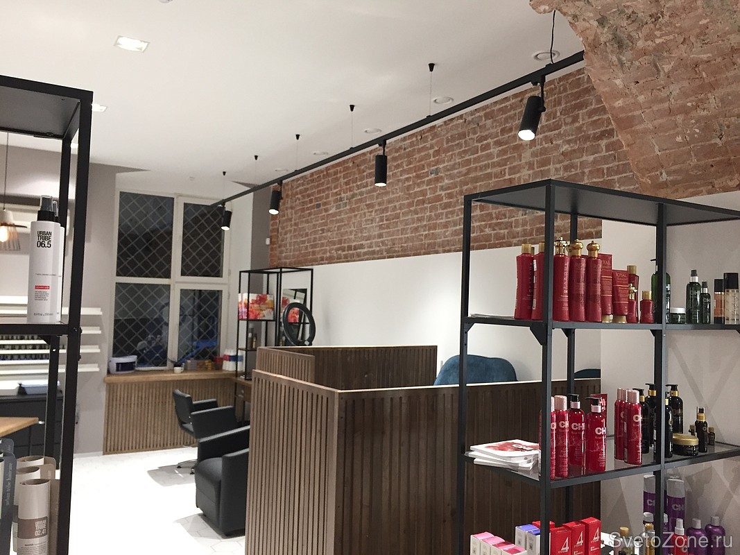 Очередной интересный проект в котором мы применяли кастомайзинг серийных моделей. Помещение салона красоты в котором, к тому же, проводят мастер классы, должно обладать очень качественным светом. Мы использовали комбинированный подход и сочетание встраиваемых, карданных светильников для организации основного света и трековые светильники Pike 30B для акцентной подсветки необходимых зон. Все светильники были произведены с использование светодиодов, обладающих высоким индексом цветопередачи, что для помещений такого типа является крайне важным. |