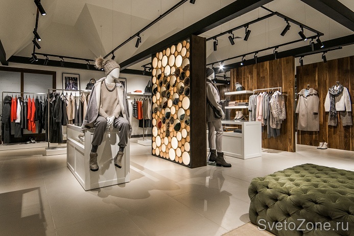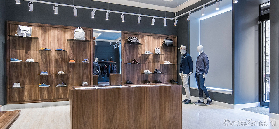 Вопрос освещения в торговых залах всегда очень важен, особенно, когда речь идет о товарах премиум сегмента. Освещение нужно подобрать таким образом, чтобы не испортить ни сам товар, ни мнение потенциального покупателя о нем. Преимущества светодиодных ламп перед галогеном всем давно известно. Галогеновый источник света содержит большое количество ультрафиолетовой составляющей, что приводит к «выгоранию» ткани. Кроме того, галогеновые светильники склонны к быстрой деградации и изменению цветовой температуры. Все наверняка видели, как галогеновая лампа через некоторое время меняет оттенок свечения в сторону зеленоватого, розового или синего цветов.