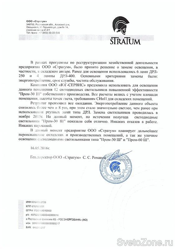 После согласования проекта заменили светильники с лампами ДРЛ-250 (6 шт.) и ДРЛ-400 (4 шт.) на светодиодные светильники повышенной эффективности "Пром-30 Ш". Соотношение замены: 10 старых светильников на 12 светодиодных.