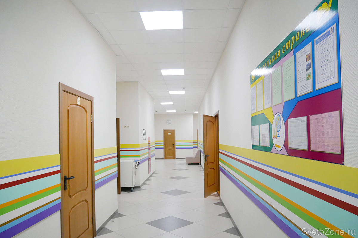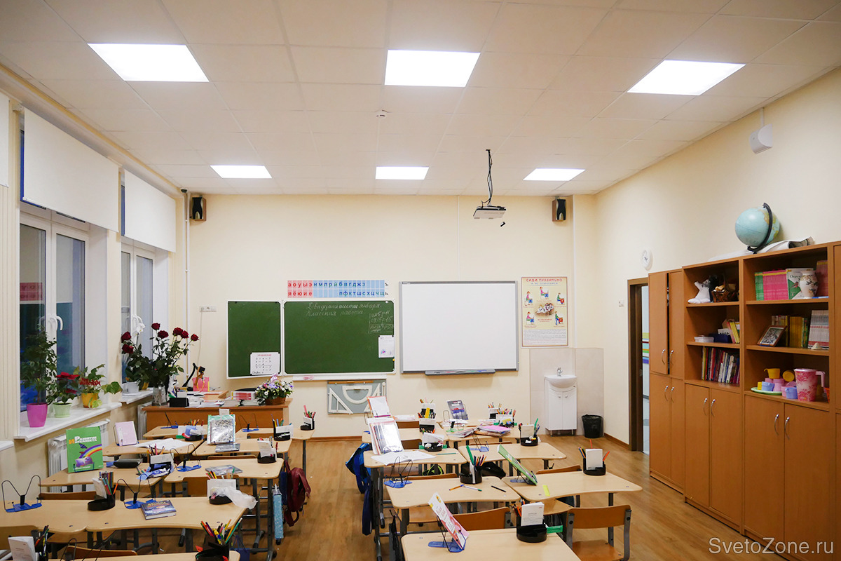 Новыми энергоэффективными светодиодными светильниками были оборудованы различные типы школьных помещений: учебные классы, лабораторные комнаты, учительские, актовые залы, коридоры и сопутствующие школьные аудитории.