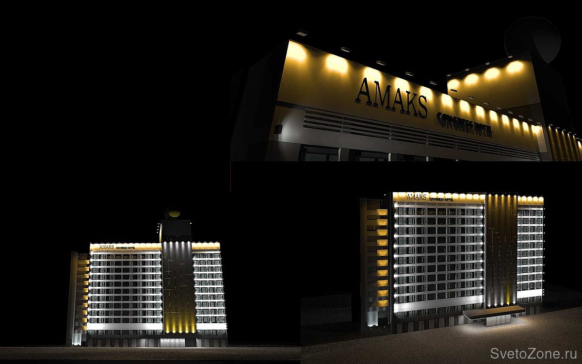 Архитектурное освещени гостиничного комплекса в прощессе реконструкции.
