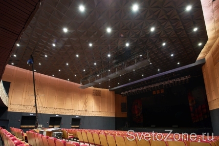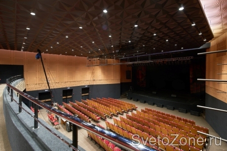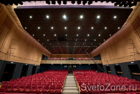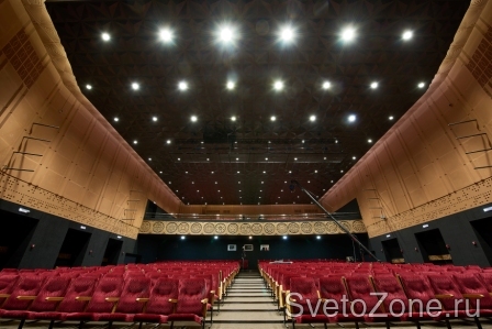 Задача: Концертный зал «Афонтово» принадлежит медиахолдингу «Юнитмедиа». В советские времена это здание было дворцом культуры: перед компанией Ledvizor поставили задачу заменить лампы накаливания на светодиодные светильники, не меняя количество и схему расстановки приборов в концертном зале.