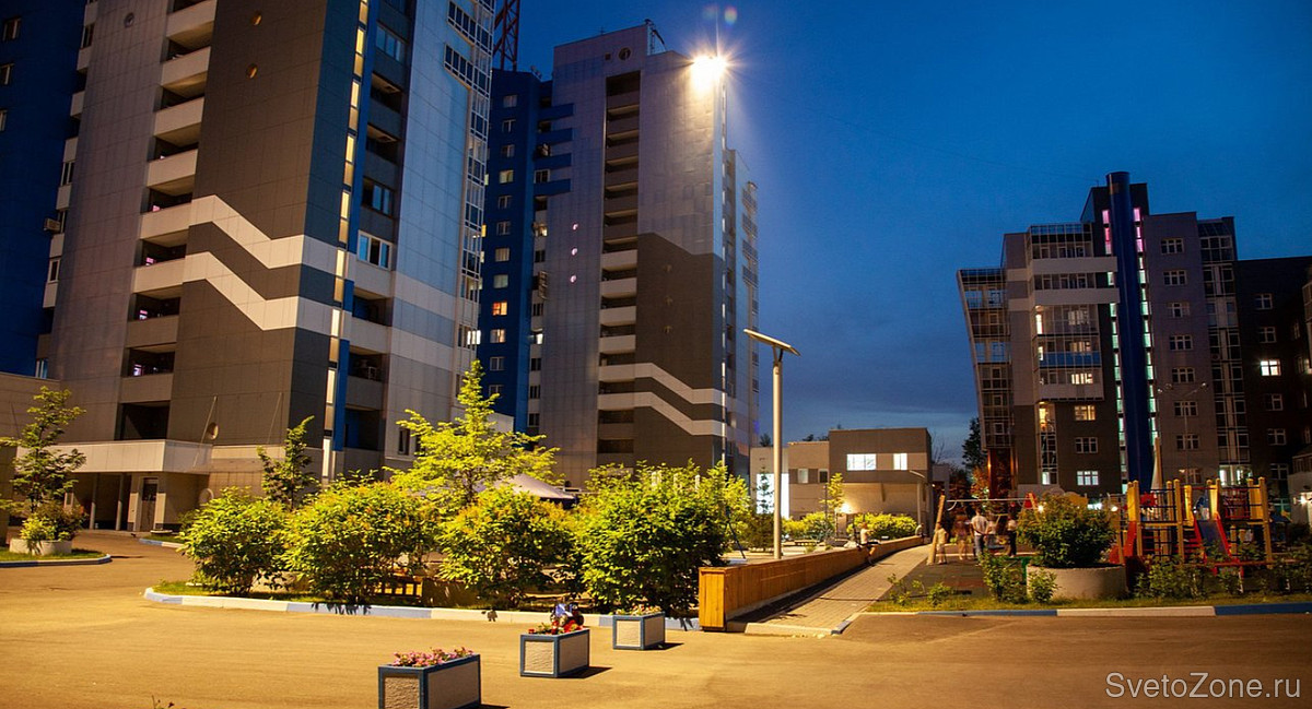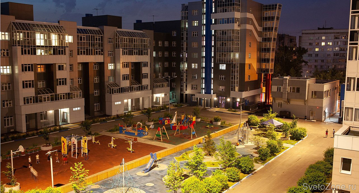 Задача: На этапе проектирования не всегда получается все предусмотреть. После того как жилой комплекс Фрегат Нео был введен в эксплуатацию, оказалось что света во дворе мало. Новых опор под освещение уже не поставишь. Бюджет ограничен. С такими вводными пришли к специалистам Ledvizor заказчики. Необходимо было разработать световое решение, чтобы сделать детскую площадку ярче, при этом чтобы свет не слепил и не попадал в окна жильцам.