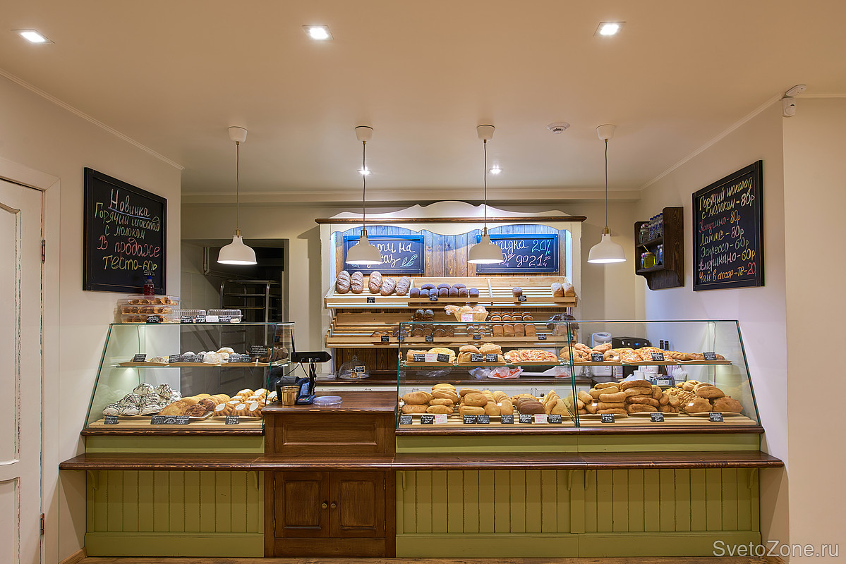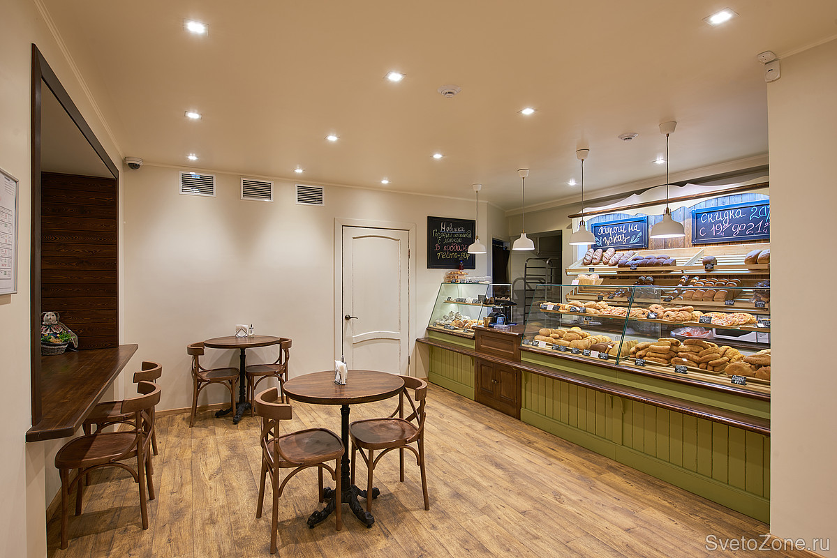 Сегодня сеть «Булочная» насчитывает три пекарни. Ledvizor делал освещение в каждой из них. |