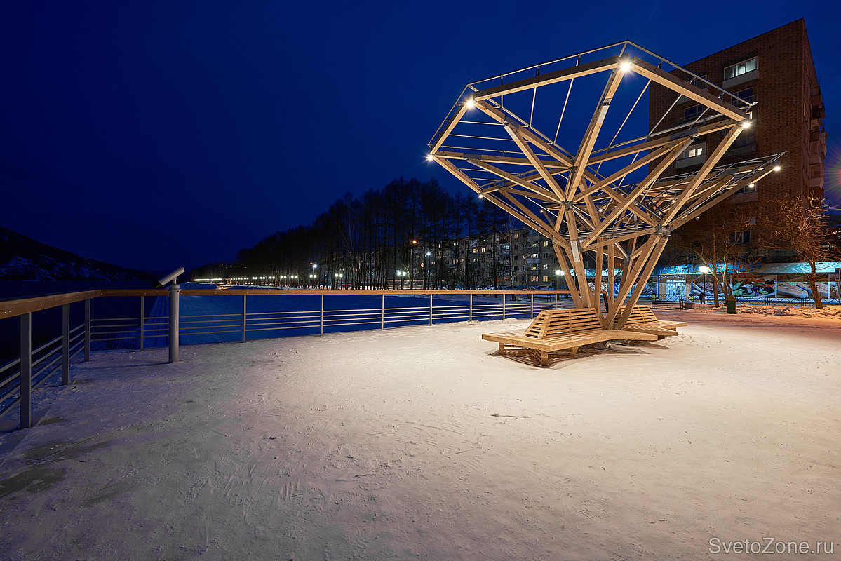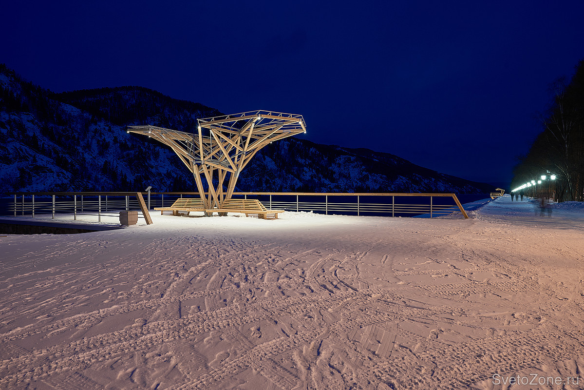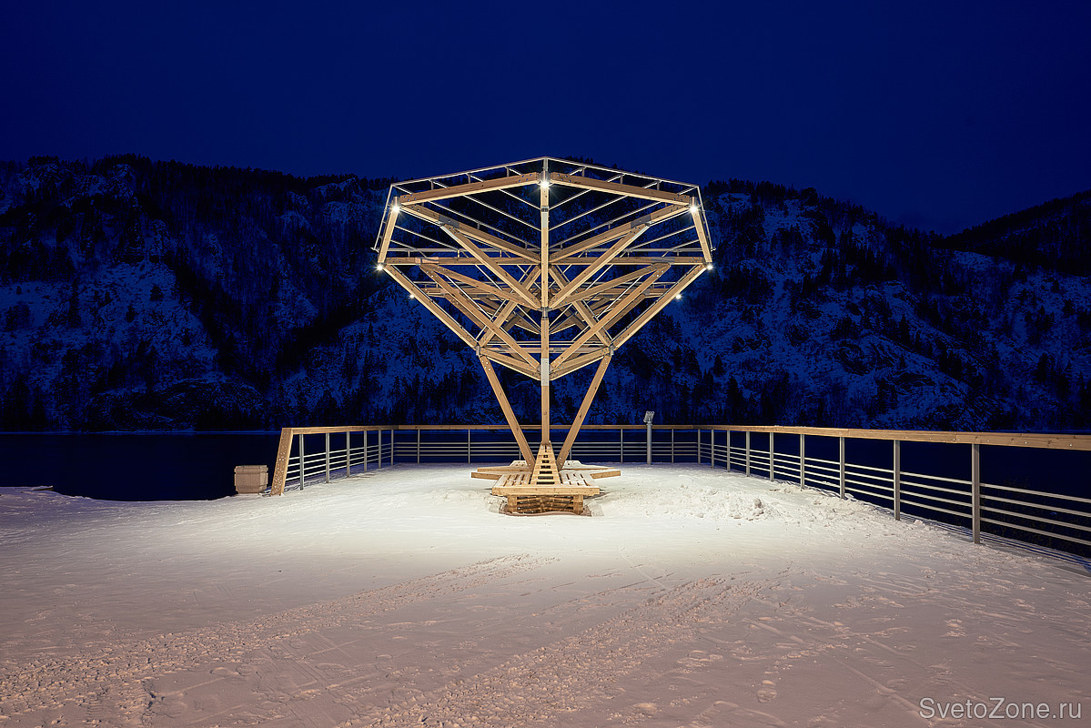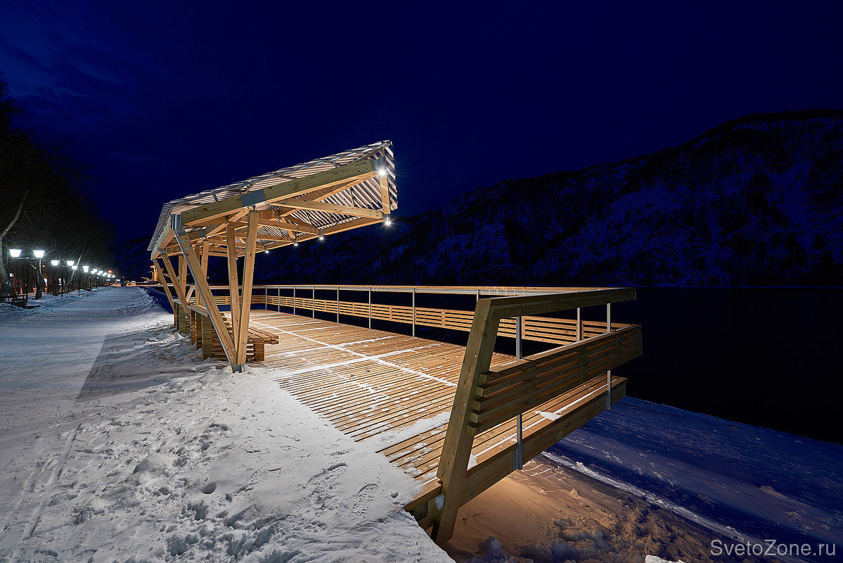 Задача: Енисей в границах Дивногорска служит природной декорацией к одной из самых живописных набережных в России. В рамках комплексного развития дивногорской набережной команде Ledvizor поставили задачу осветить концептуальные беседки и прилегающую к ним территорию.