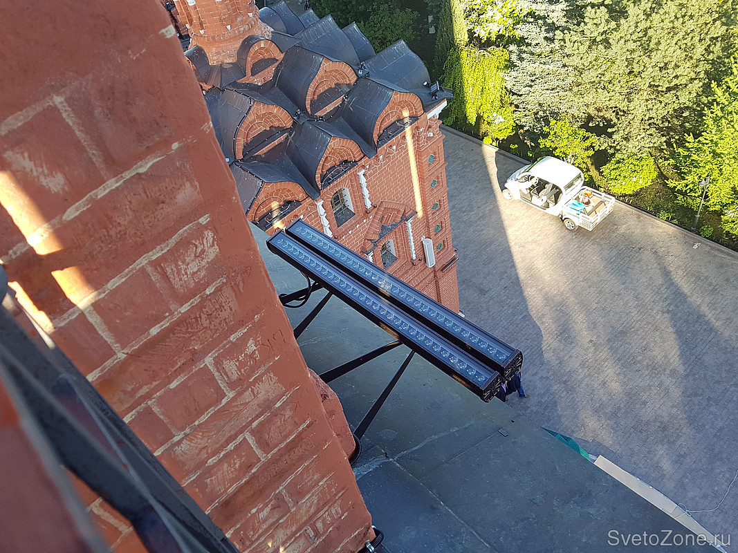 Специально для проекта компания «Светсервис» изготовила кастомизированные кронштейны, так как практически для всего оборудования нужен был больший вынос или же нестандартное крепление на неровные поверхности. «Светсервис» также выполнил поставку и монтаж оборудования. |