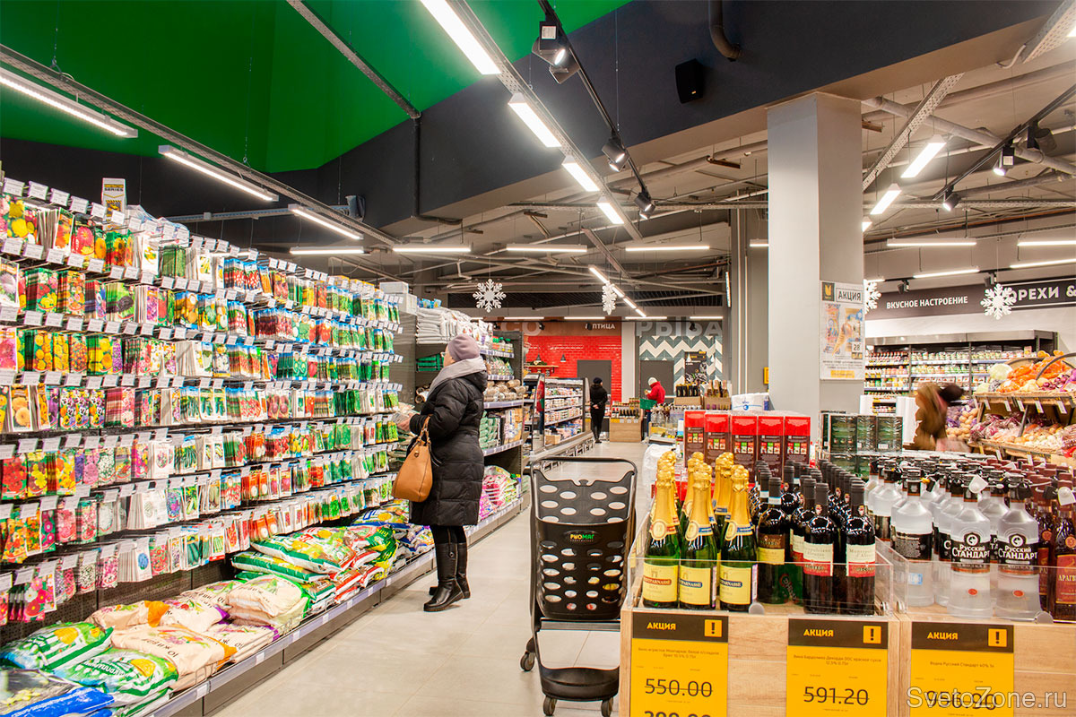 В результате проведенной проектной работы, специалистам компании «ЛЕД-Эффект» удалось создать в торговых залах супермаркета «РИОМАГ» комфортную световую среду. |