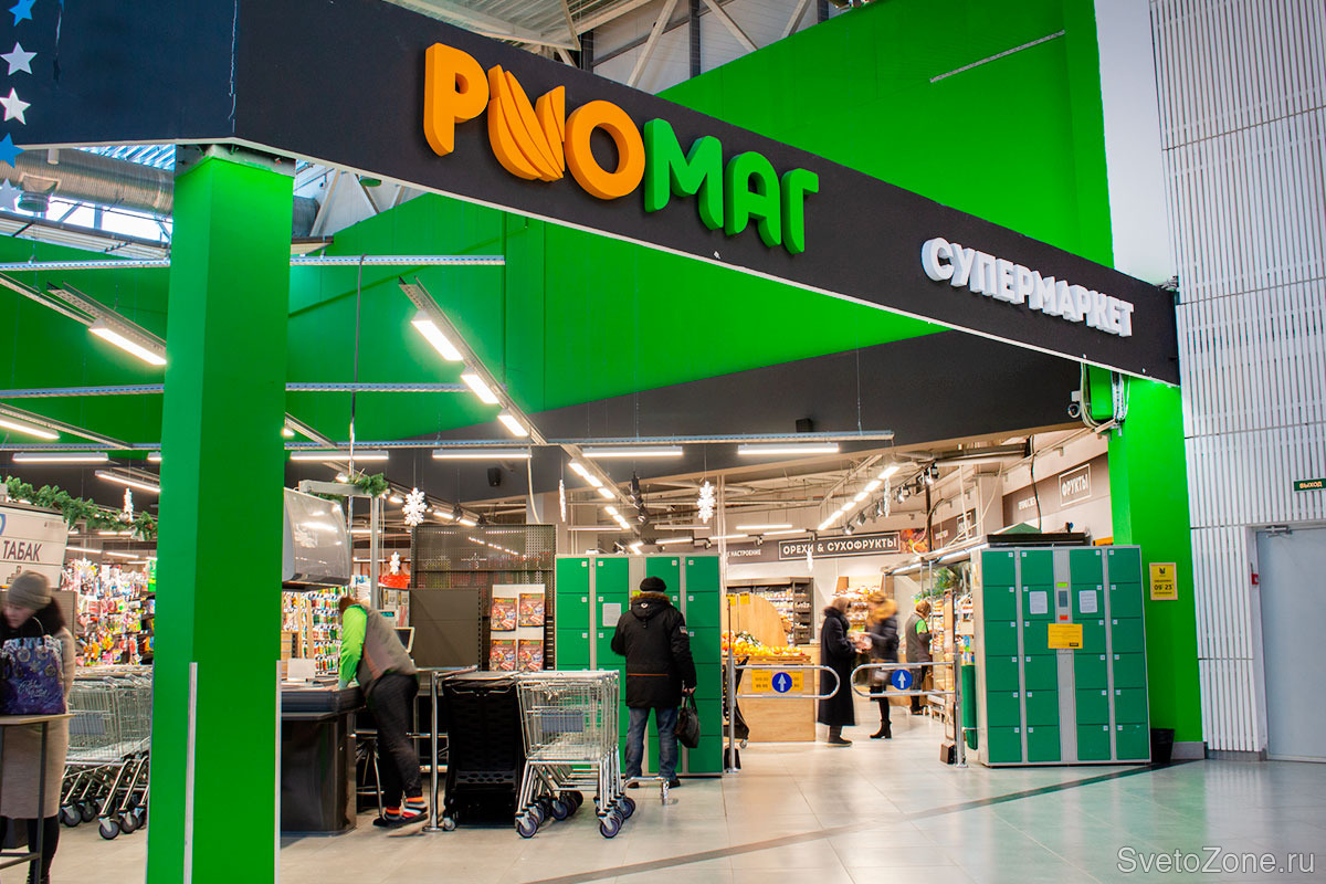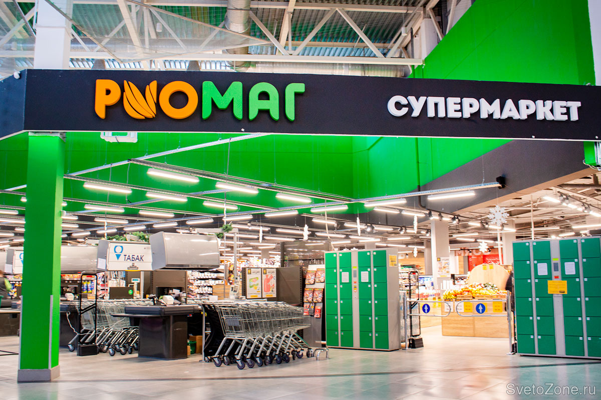Компания ООО «ЛЕД-Эффект» совместно с дилером компанией «Эко Свет Нева» приняла участие в освещении супермаркета «РИОМАГ», который расположен в городе Гатчина.