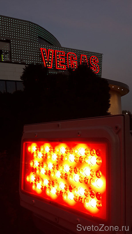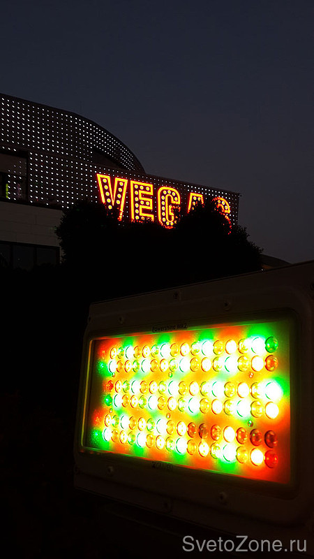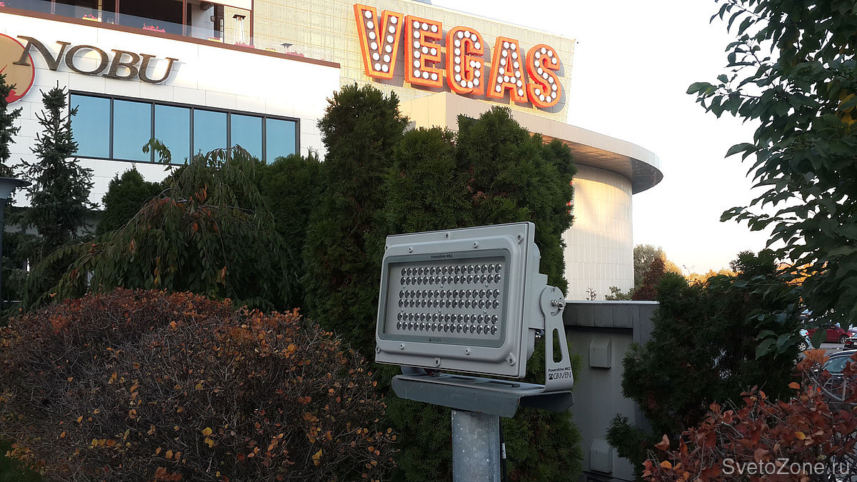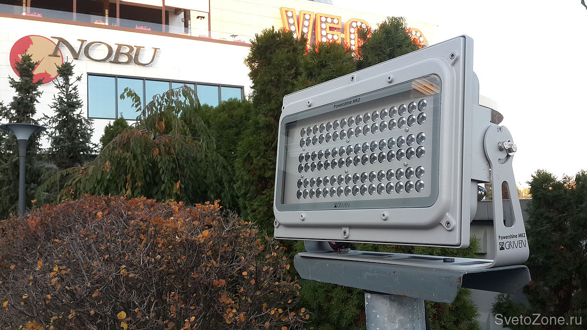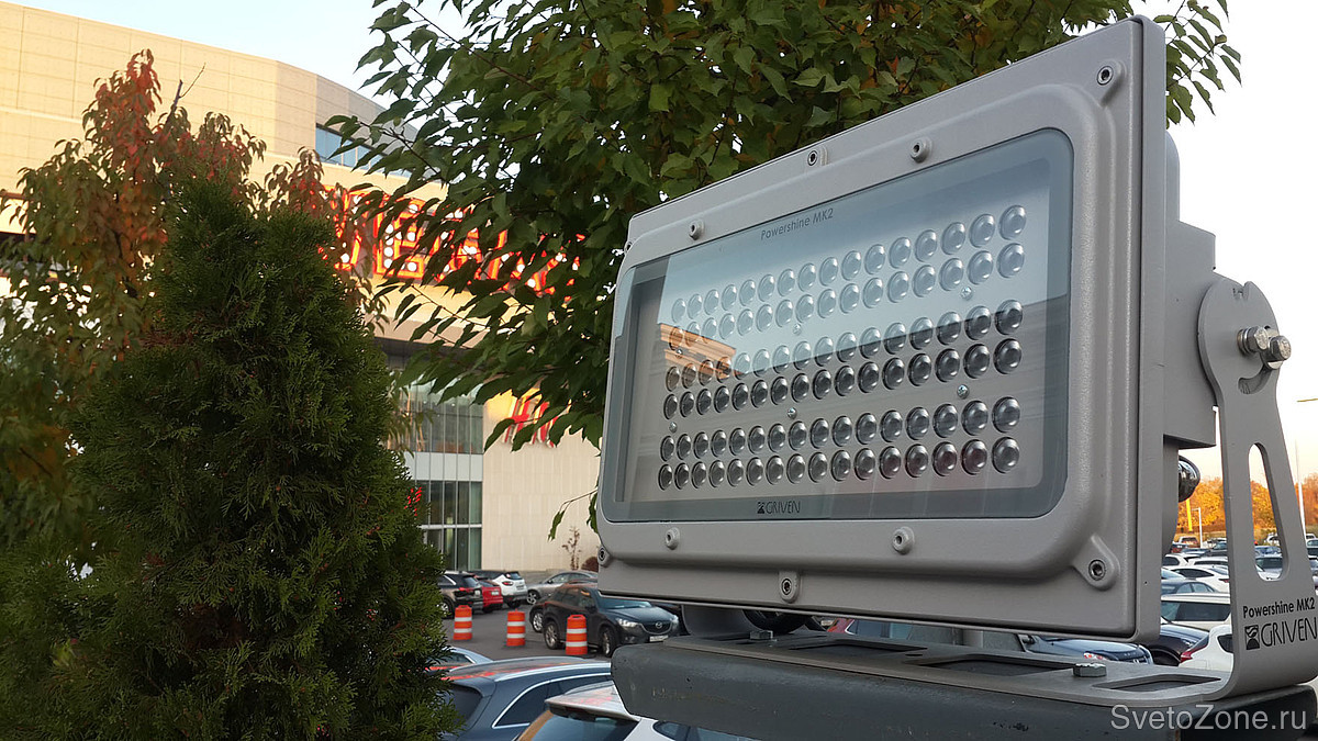 Взамен приборов на металлогалогенных лампах предложено использование светодиодных прожекторов.