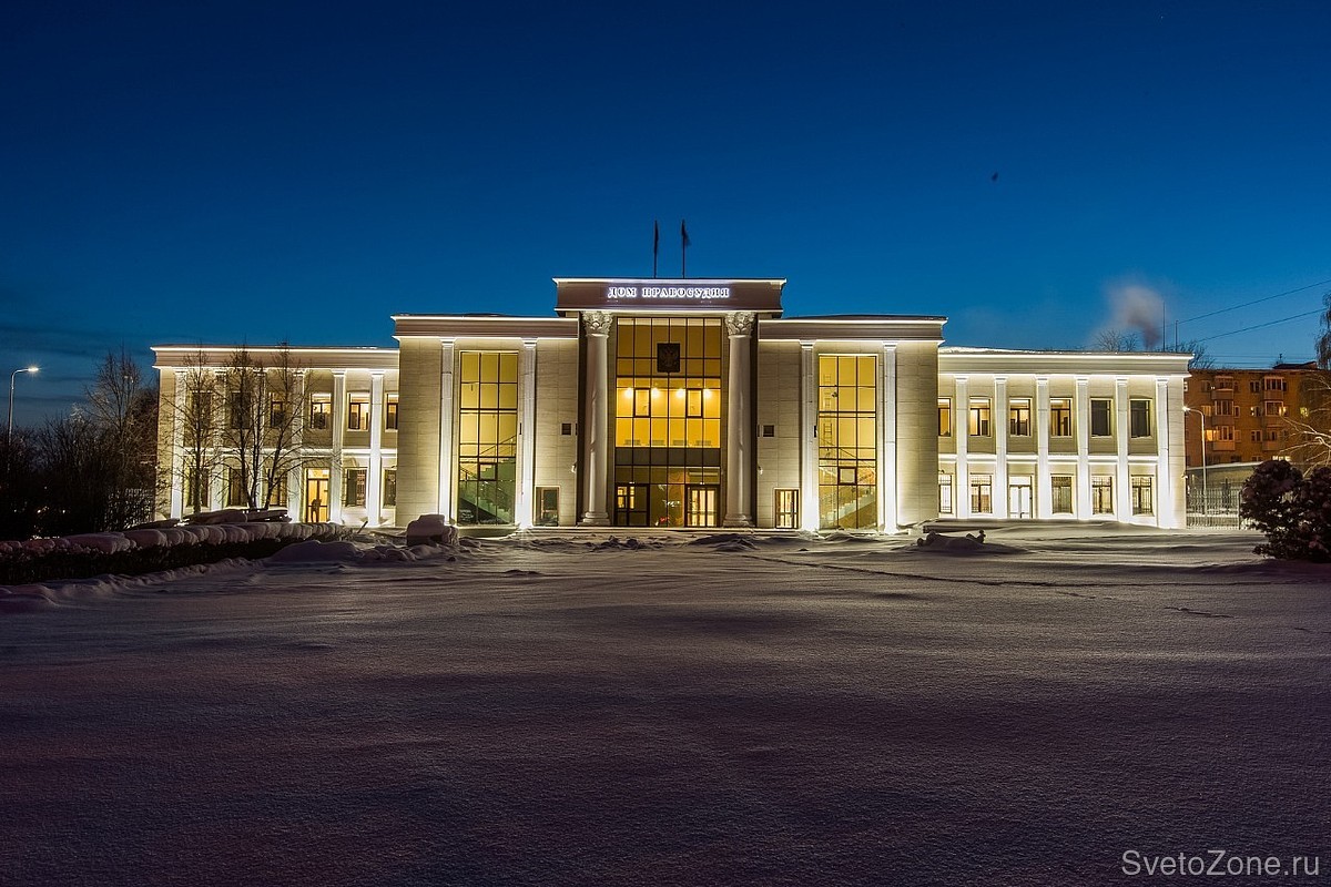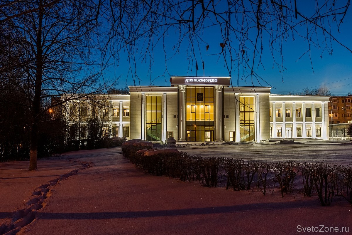 Освещение зала суда организовали с помощью встраиваемых моделей ДВО. |