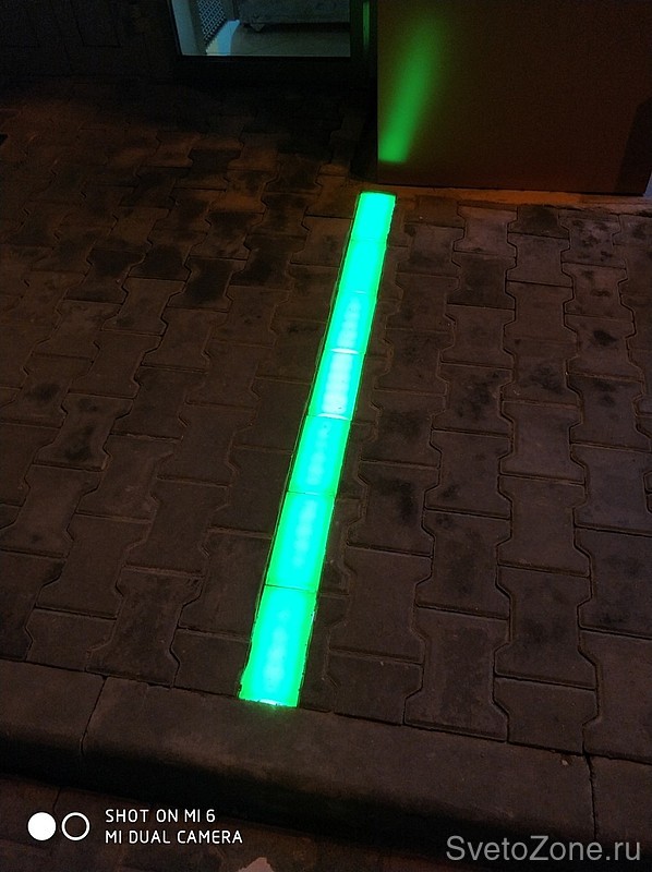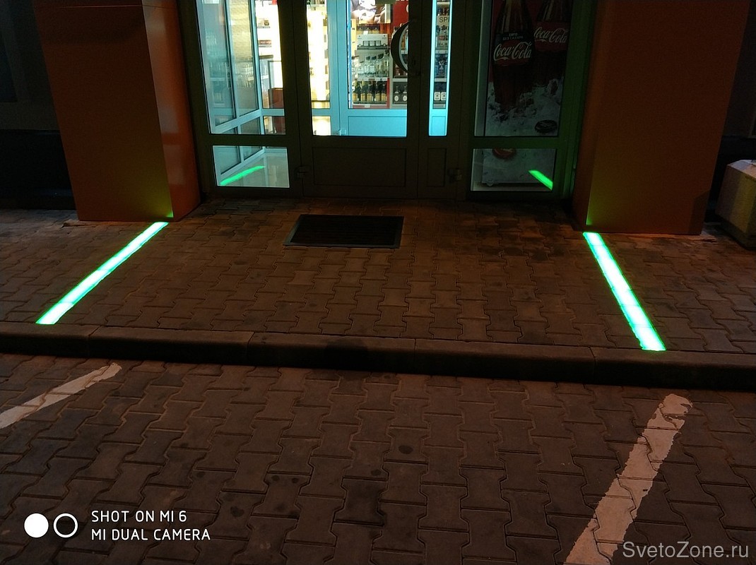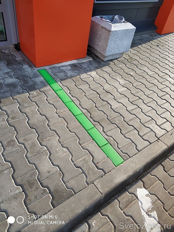 Подсветка входной группы. Светодиодная брусчатка с зеленым рассеивателем #LEDpavers 200х100х60 мм, Зеленая как днем так и ночью, согласно фирменным цветам сети магазинов.