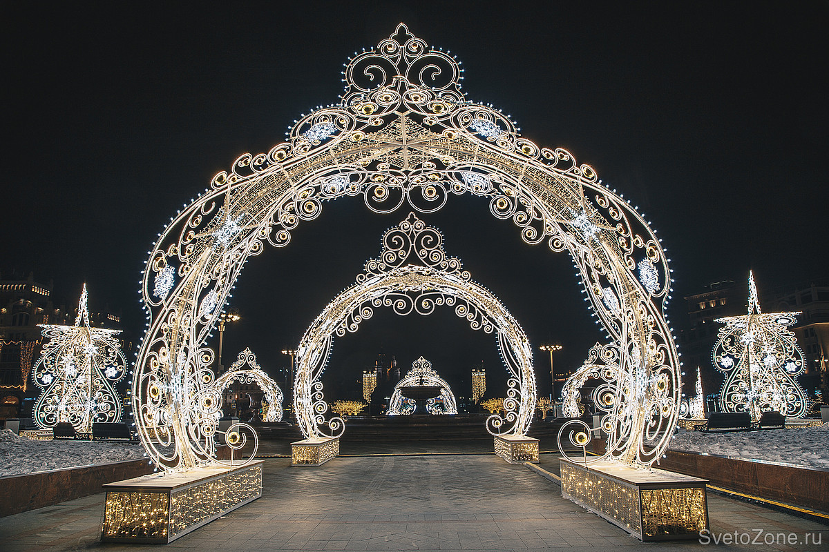 Наши световые инсталляции украшают Красную и Манежную площади, Лубянскую площадь, Большой театр и другие центральные площадки Москвы. |
