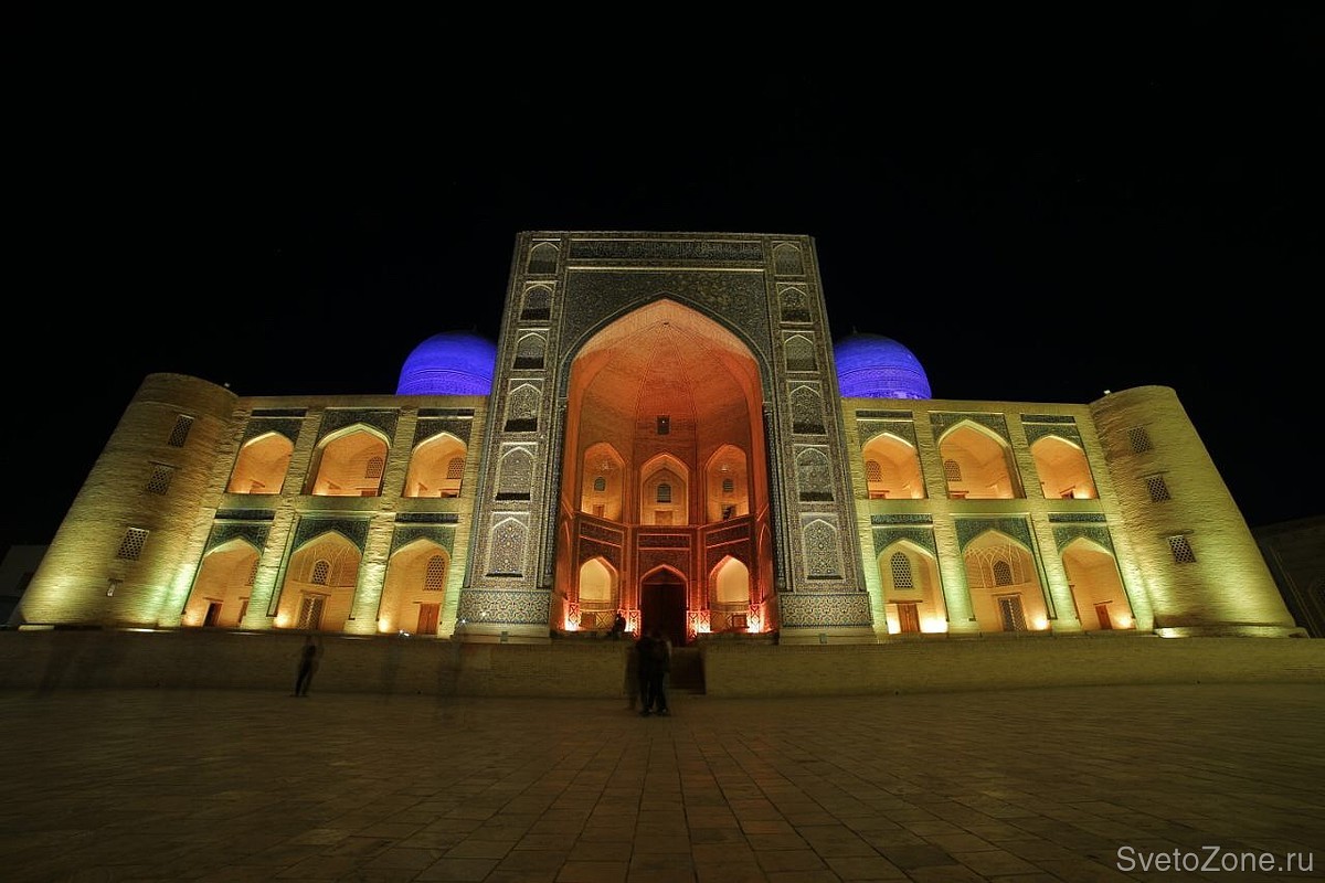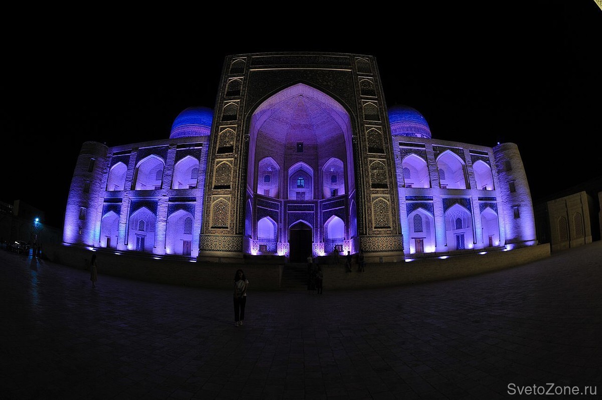 Купола Мири Араб равномерно освещены светильниками серии IntiSTARK. Световой поток прожекторов направляет медресе зрительно ввысь. Этот эффект ассоциируется с возвышенностью и святостью культового сооружения.