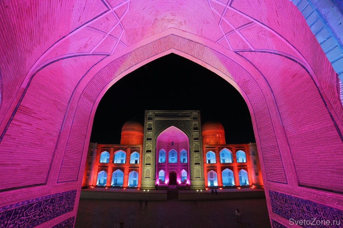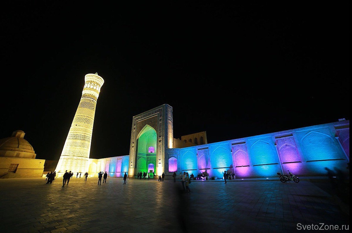 Для двух объектов Пои-Калян — мечети Калян и медресе Мир Араб — светодизайнеры разработали единую концепцию архитектурного освещения. Здания выполнены в едином архитектурном стиле и обращены фасадами друг к другу. Главная задача, которая стояла перед световыми дизайнерами — подчеркнуть единство этого ансамбля и создать целостный вечерний образ.