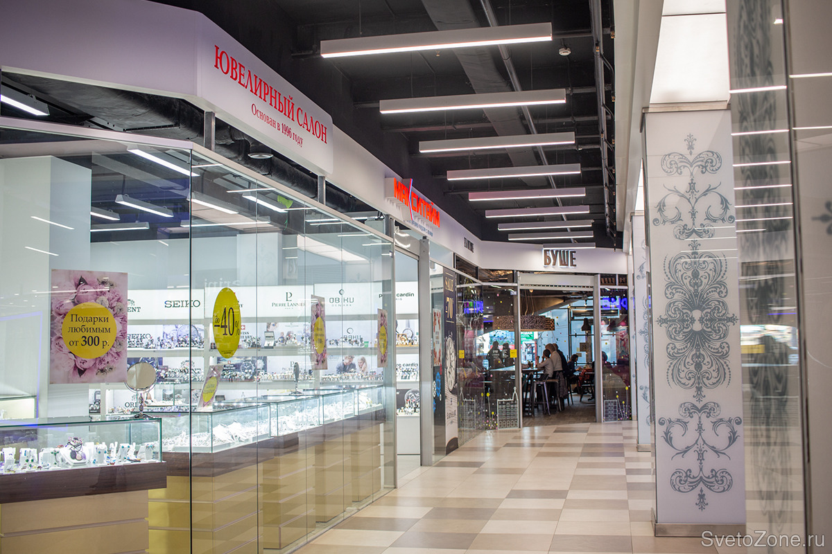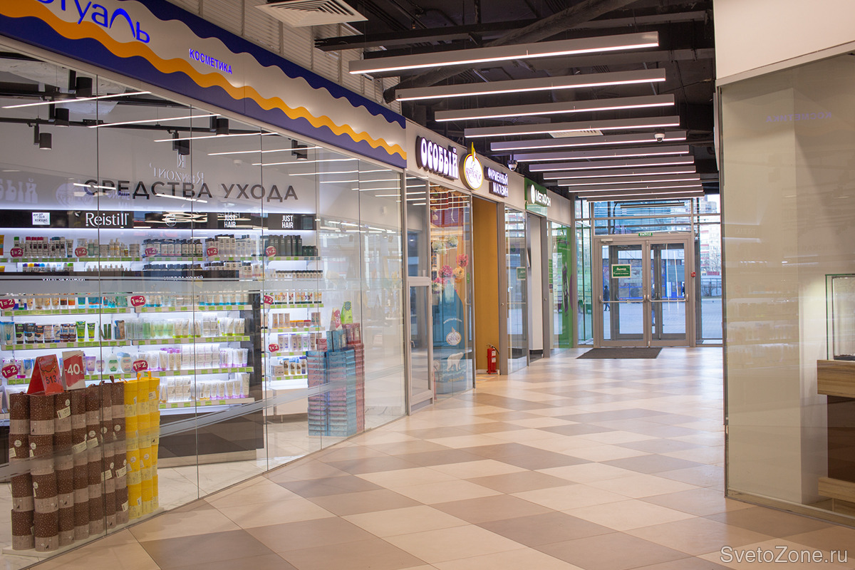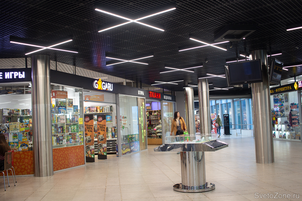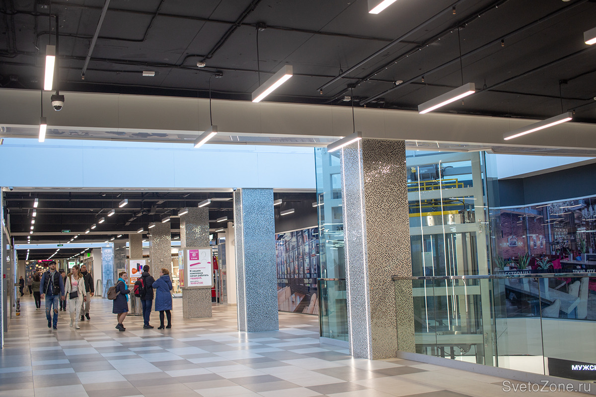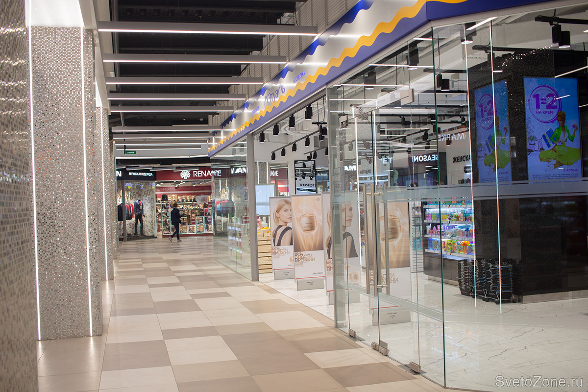 Освещение ТРК одновременно интересная и ответственная задача, от созданной световой среды и примененных решений будет зависеть настроение посетителей, а от надежности светильников зависит настроение обслуживающих служб и собственников бизнеса.