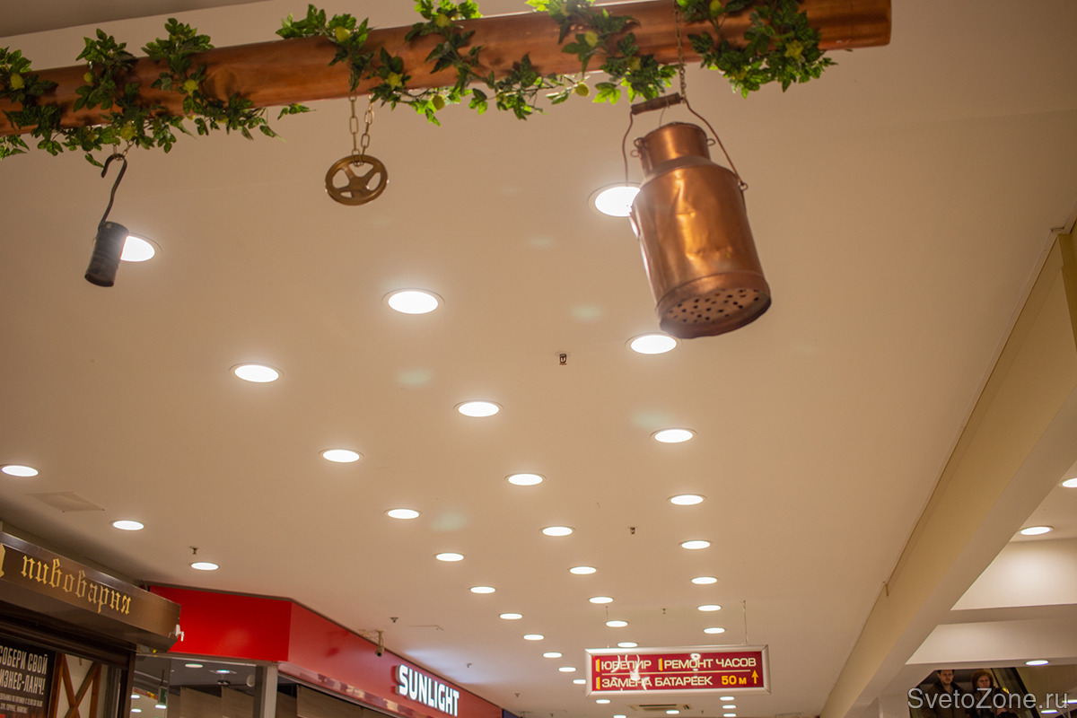 ТЦ «МЕРКУРИЙ» был открыт в 2003 году, с момента открытия в ТЦ были установлены светильники с люминесцентными и компакт-люминесцентными источниками света, которые на тот момент являлись актуальными и востребованными, но время идет и технологии освещения активно развиваются, а устаревшие светильники требуют к себе все большего внимания, в связи с чем управляющими ТЦ было принято решение модернизировать парк светильников.
