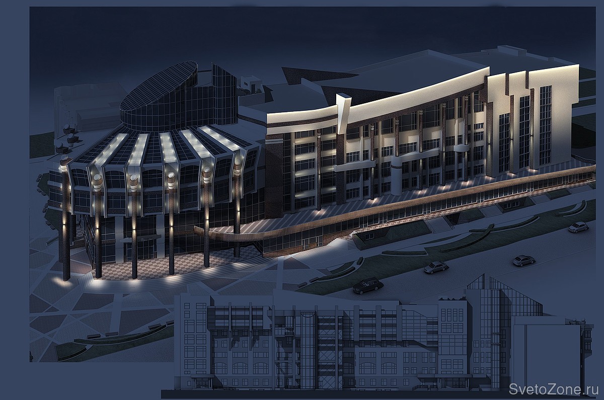 Компания Икслайт совместно с партнёром по Краснодарскому краю (ООО «Элком», г. Армавир) разработала уникальную концепцию освещения института. Перед специалистами стояла задача эффектно «обыграть» светом дизайнерские элементы и сложные формы фасада здания. В реализации концепции были задействованы разнообразные светильники для архитектурного освещения:
