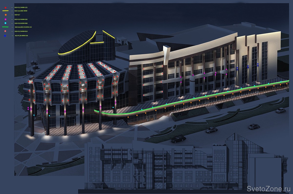 3. Мощные прожекторы «XLD-AL36» - для заливки фасада светом;