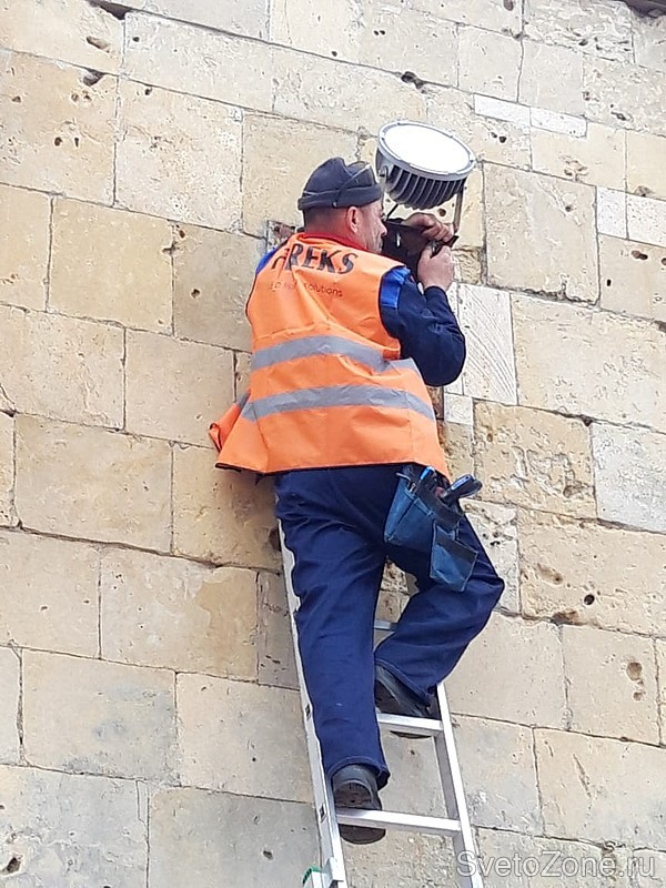 Модернизация системы освещения памятника. Ранее для освещения монумента использовались 3 прожектора с лампами МГЛ-400 Вт. В новой системе освещения применены высокоэффективные светодиодные светильники «ФЕРЕКС» серии FHB мощностью 150 Вт и 230 Вт. |