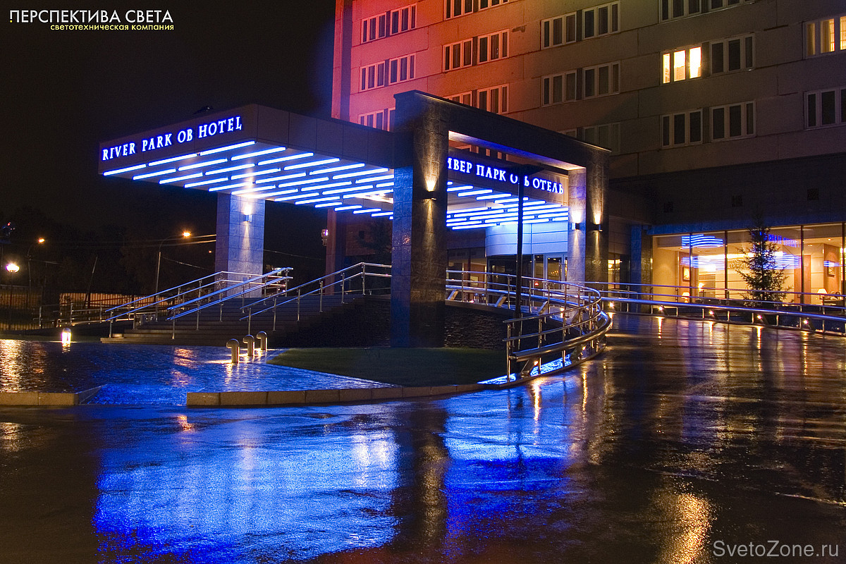 В 2008 году была выполнена подсветка River Park Ob Hotel в г. Новосибирске.