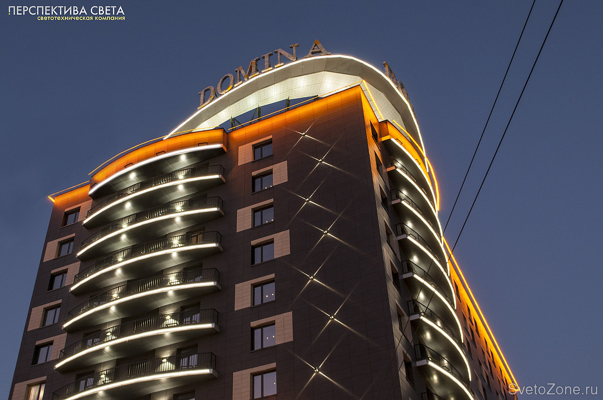 В 2014 году была выполнена подсветка гостиницы Домина в г. Новосибирске.