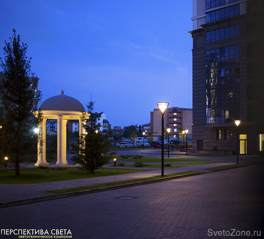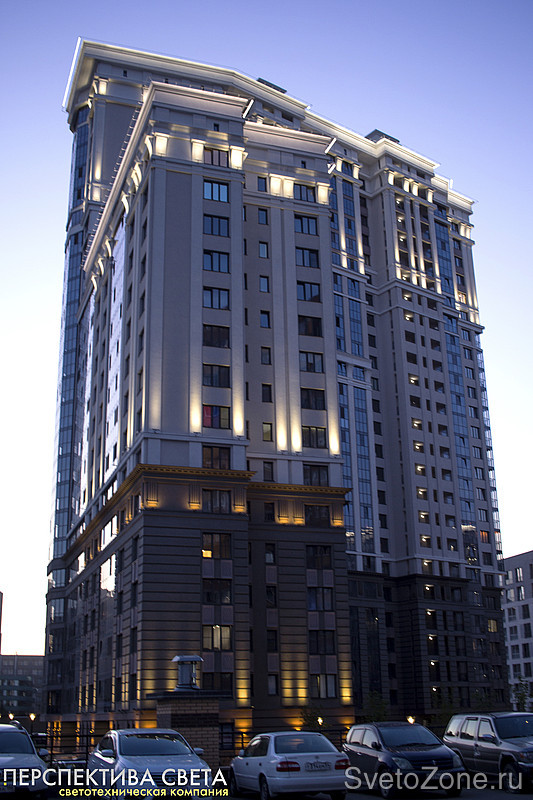 Была разработана и выполнена архитектурно-художественная подсветка ЖК Дом на Немировича и прилегающей территории.