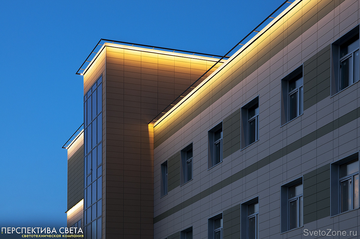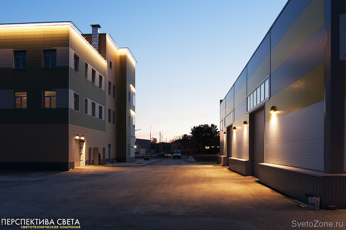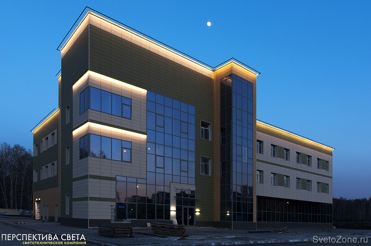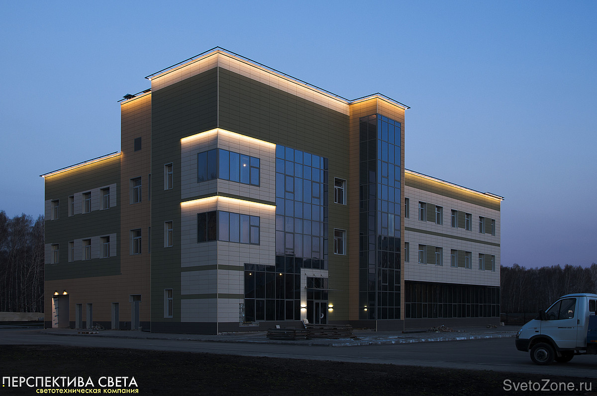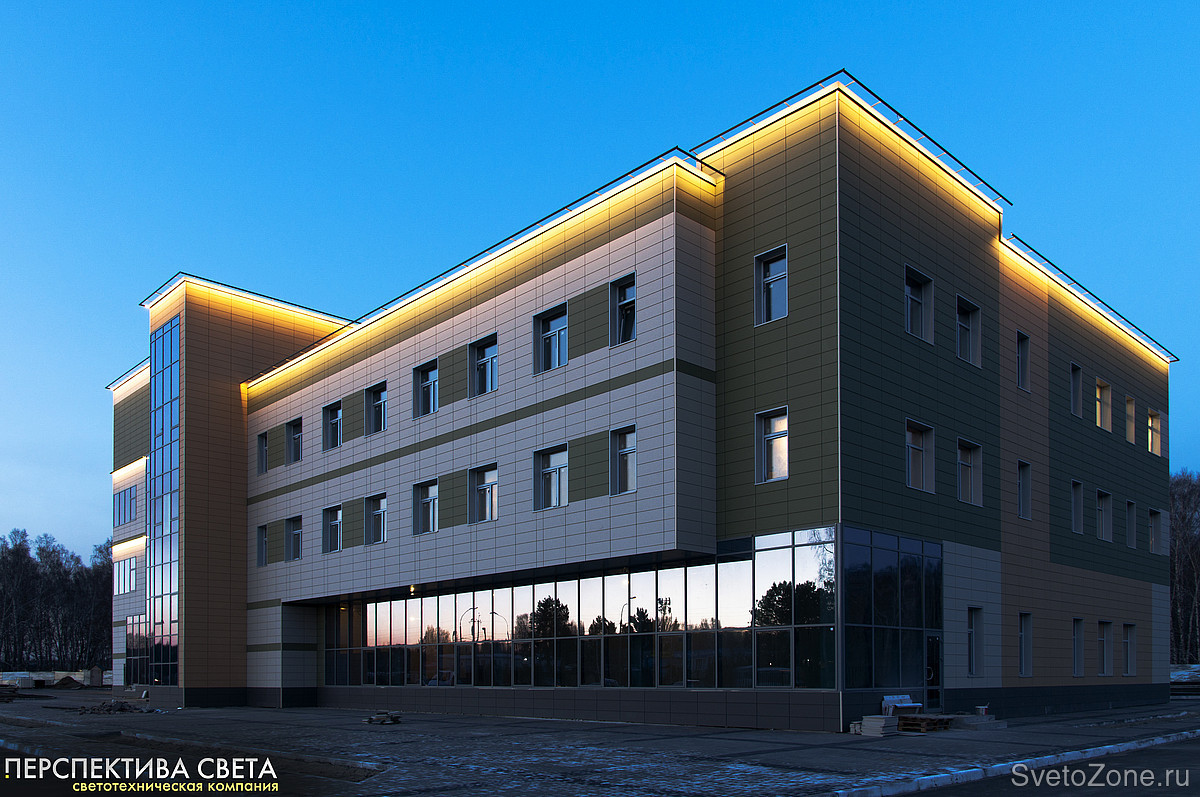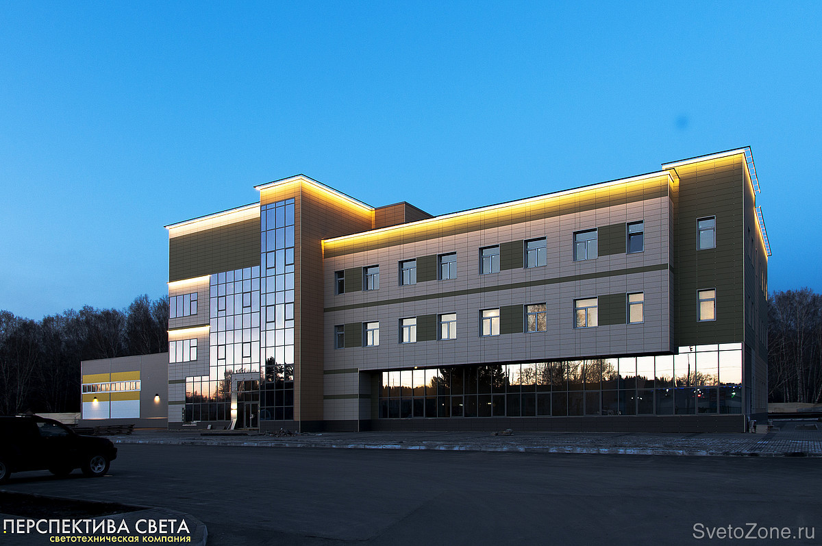 Административное здание компании ЛКДС расположено в Краснообске. Лаконично и достаточно стильно оформлена подсветка зданий комплекса. Использовано новейшее светодиодное оборудование.