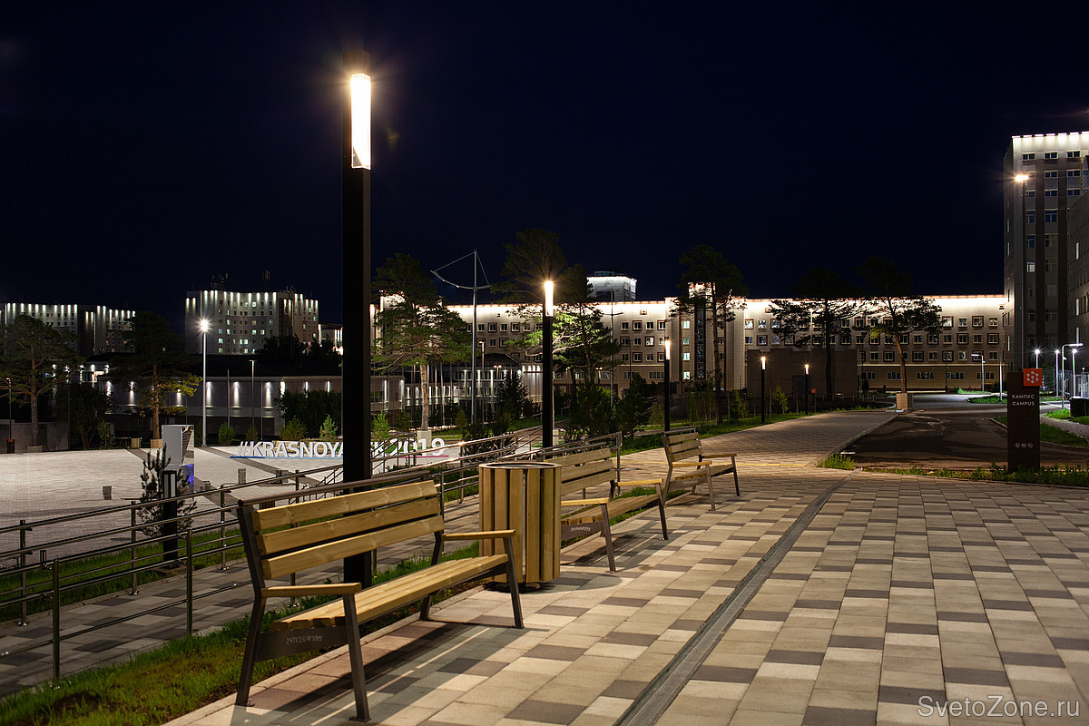 Ledvizor помогли реализовать проект освещения обновленного кампуса СФУ. На территории кампуса установлены интегрированные в опору светильники LV-OBLONG. Они отвечают как за общее освещение, так и за освещение дорожек и пешеходных зон. Навигационную функцию выполняют болларды LV-KVADR. Светильники на опорах до 1 метра светят не только вниз, но и в стороны. Такой свет не слепит и помогает ориентироваться в пространстве.