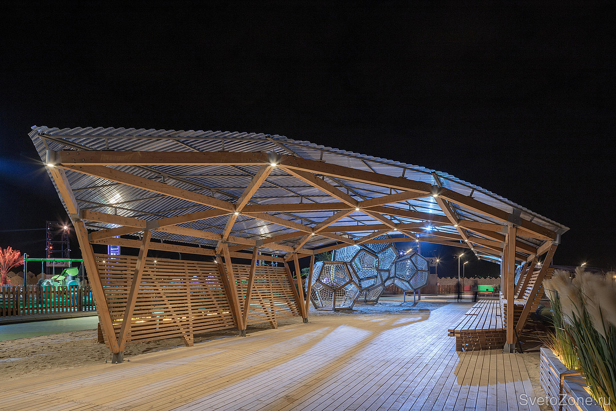 Вечером зоны отдыха в Diriyah Oasis освещаются нашими светильниками серии LV-LIGHTSABER. Приборы Ledvizor отлично вписались в общую концепцию культурно-исторического центра в Эр-Рияде.