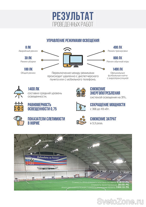 Освещение спортивных сооружений, fitness&spa клубов |