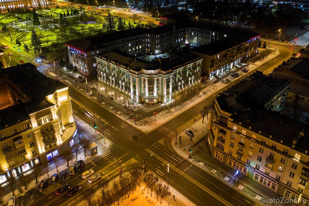 Если смотреть издалека, то нам открывается подсветка всего здания.
