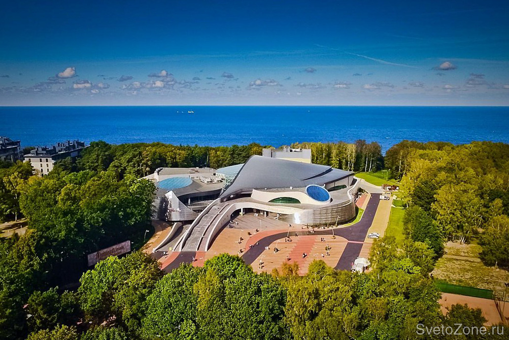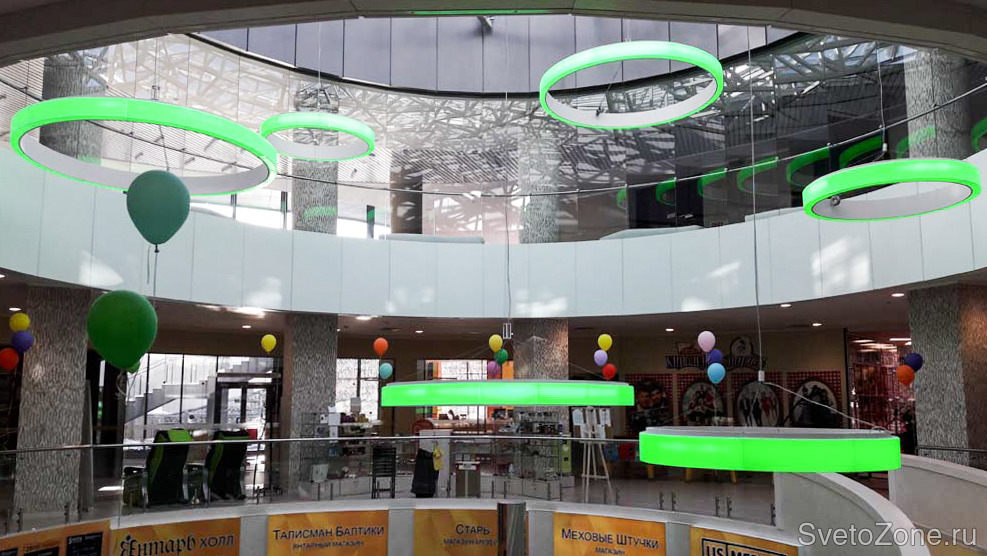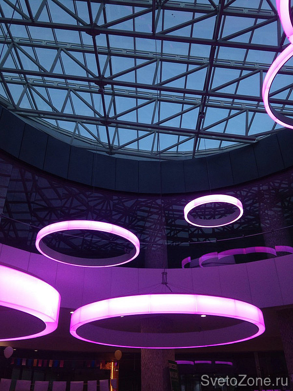 Современный многофункциональный концертный комплекс, расположенный на берегу Балтийского моря, поражает своим футуристическим внешним дизайном и масштабом. Внутренне пространство продумано также креативно. В качестве освещения использованы дизайнерские подвесные светильники с многоцветной лентой. Управление цветом осуществляется с помощью декодера для RGB-лент, который позволяет получить более 16 млн. ярких оттенков.