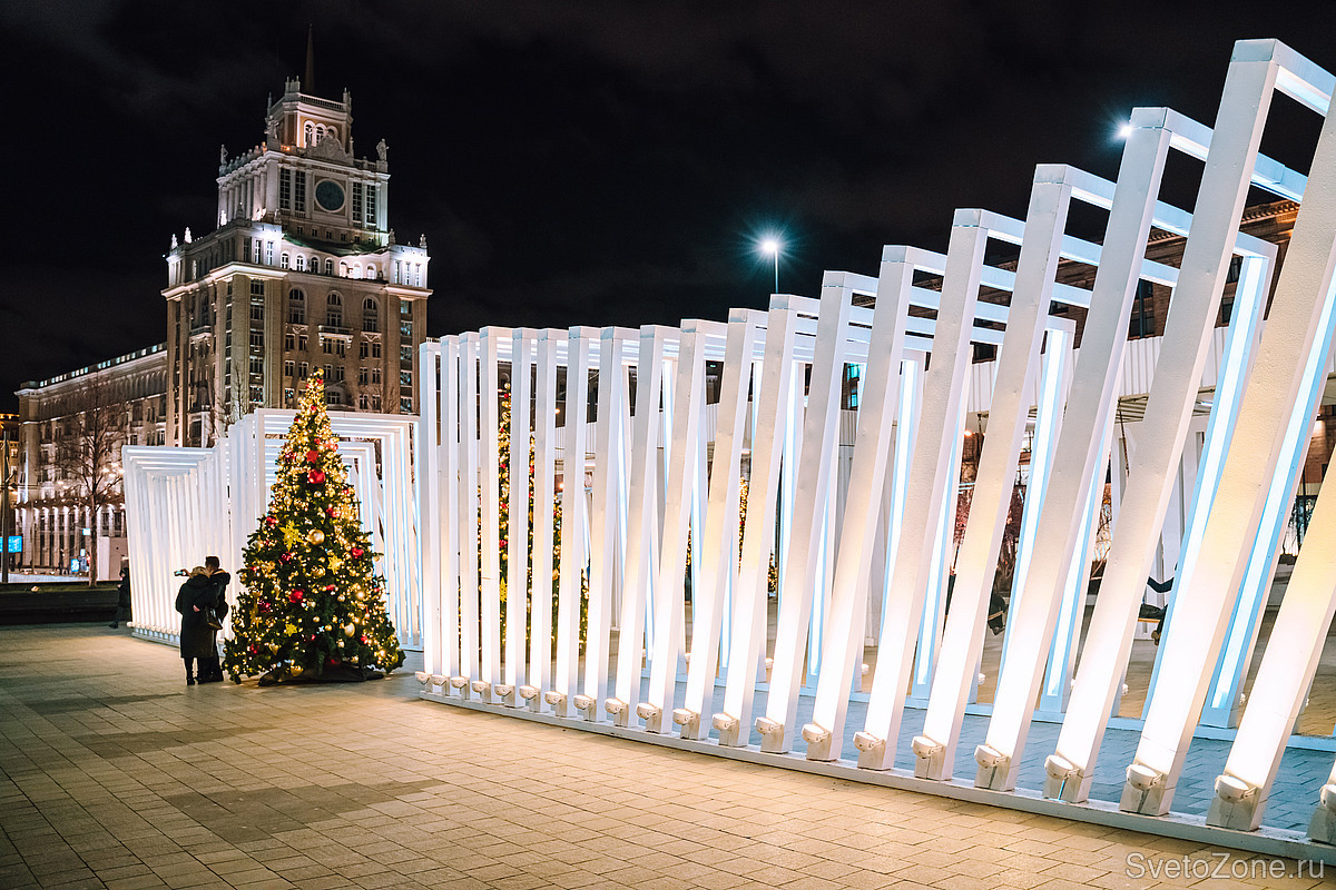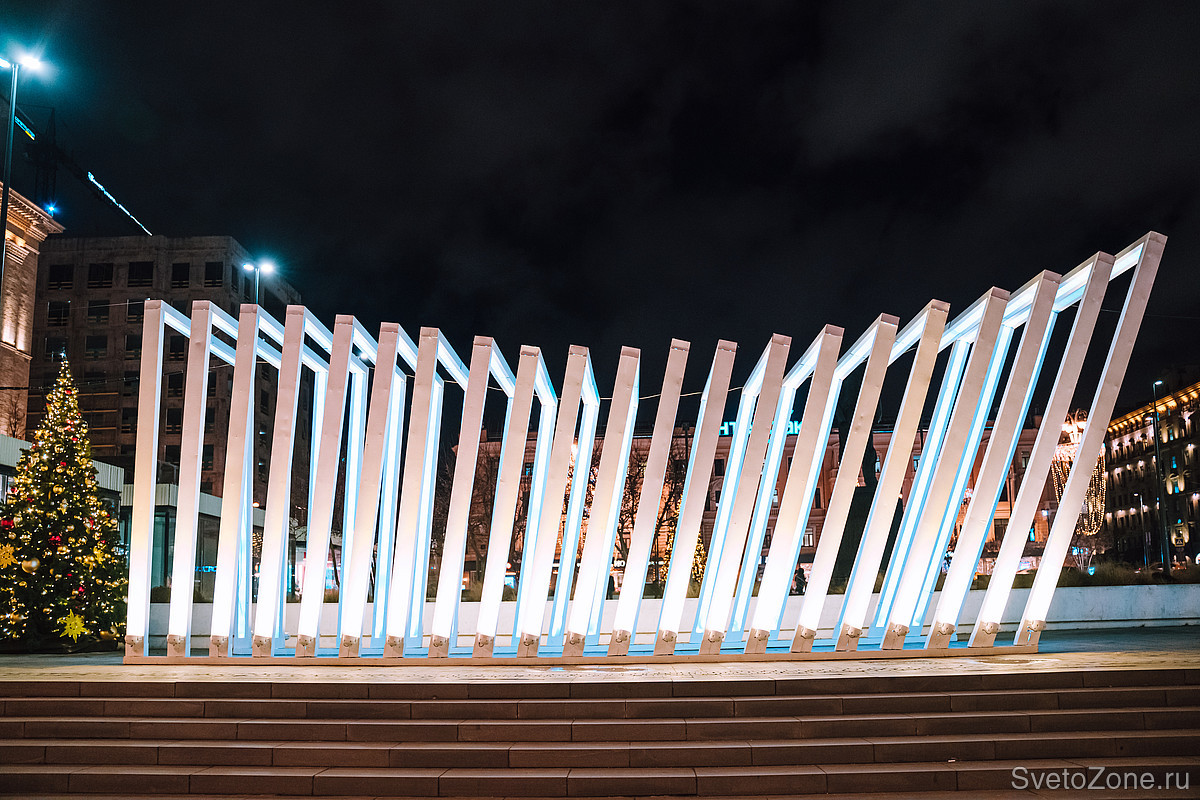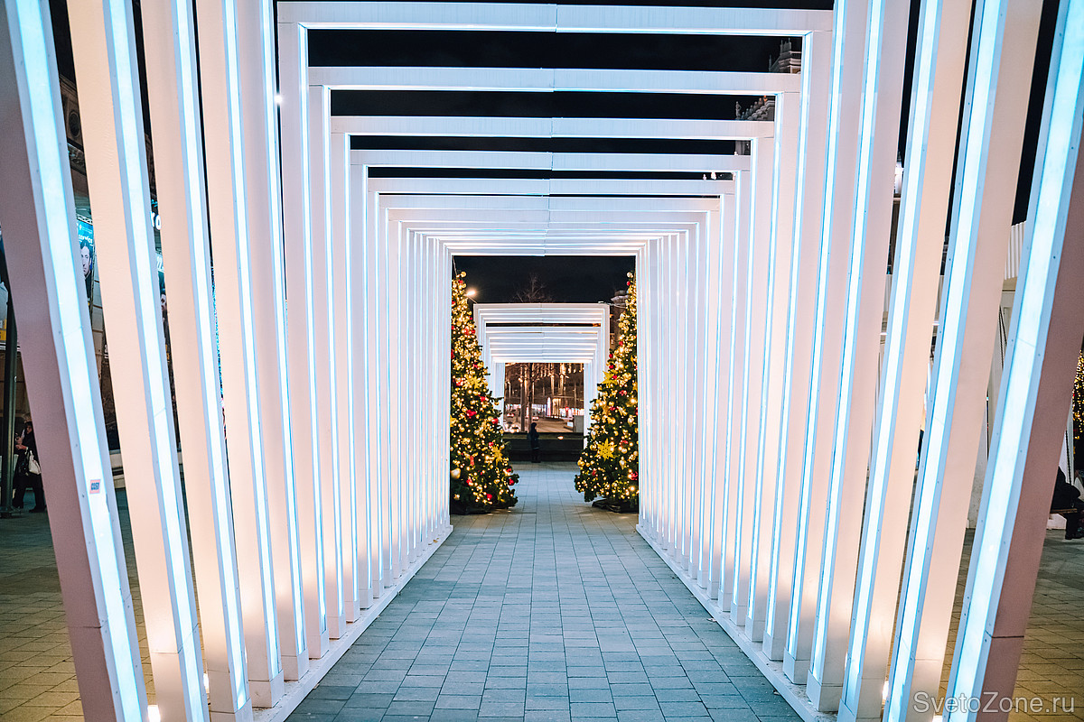 Новогодние световые тоннели украсили Триумфальную площадь, создав на площади дополнительный архитектурный и световой акцент.