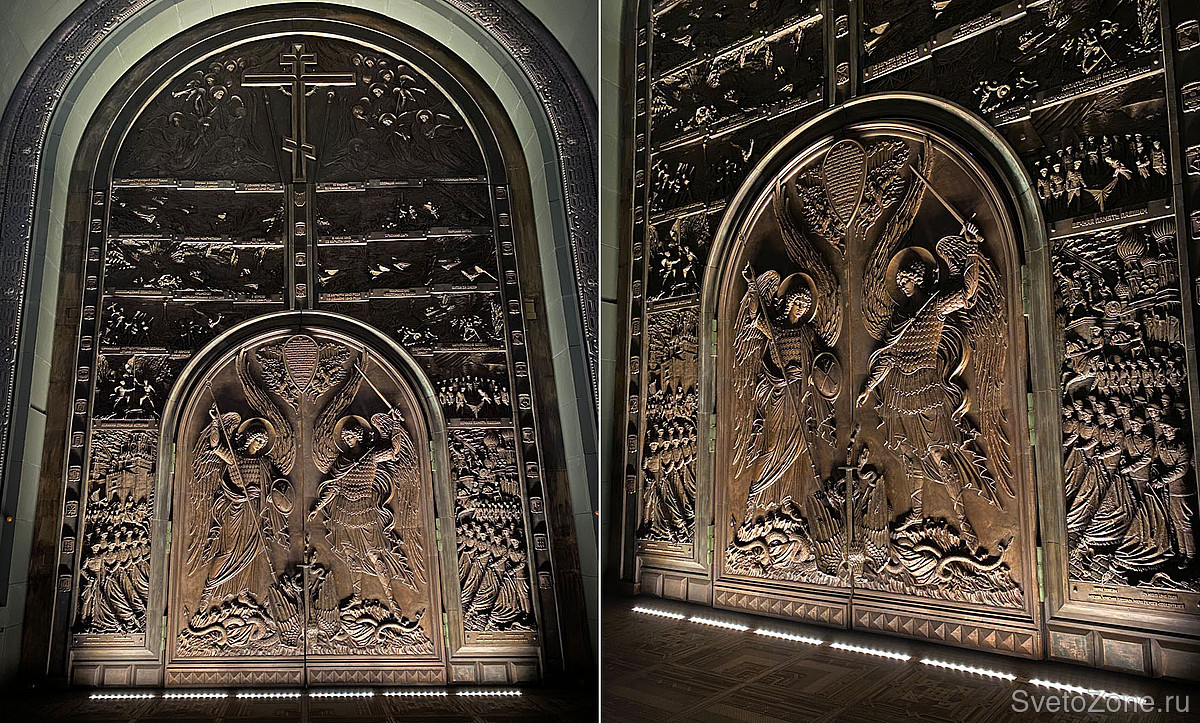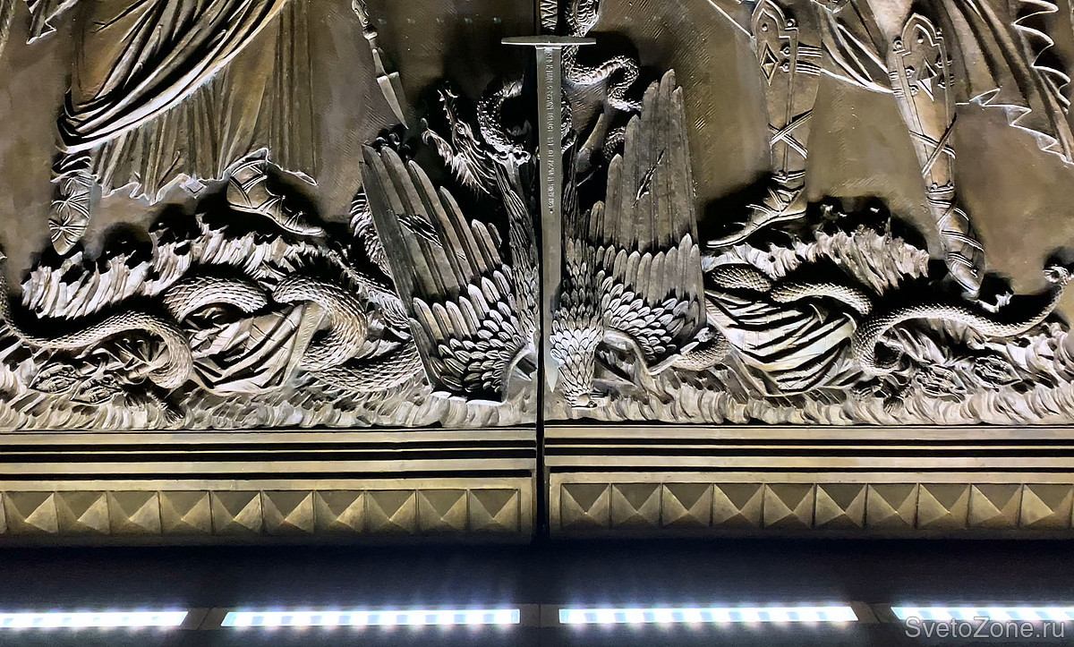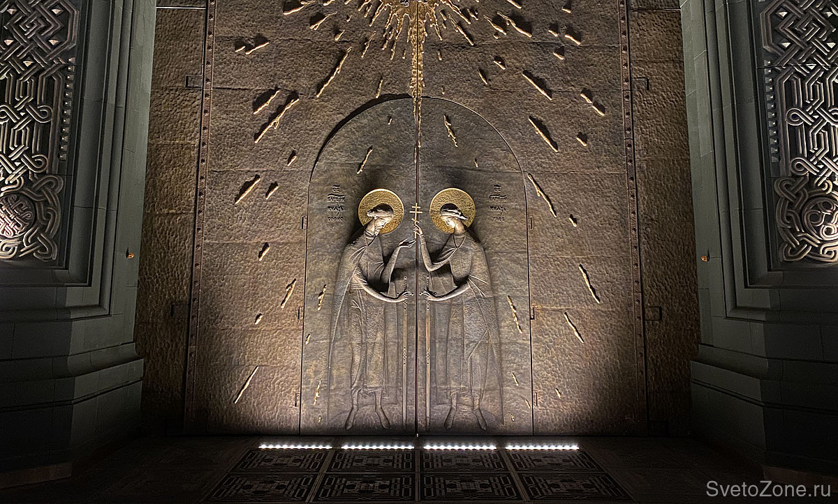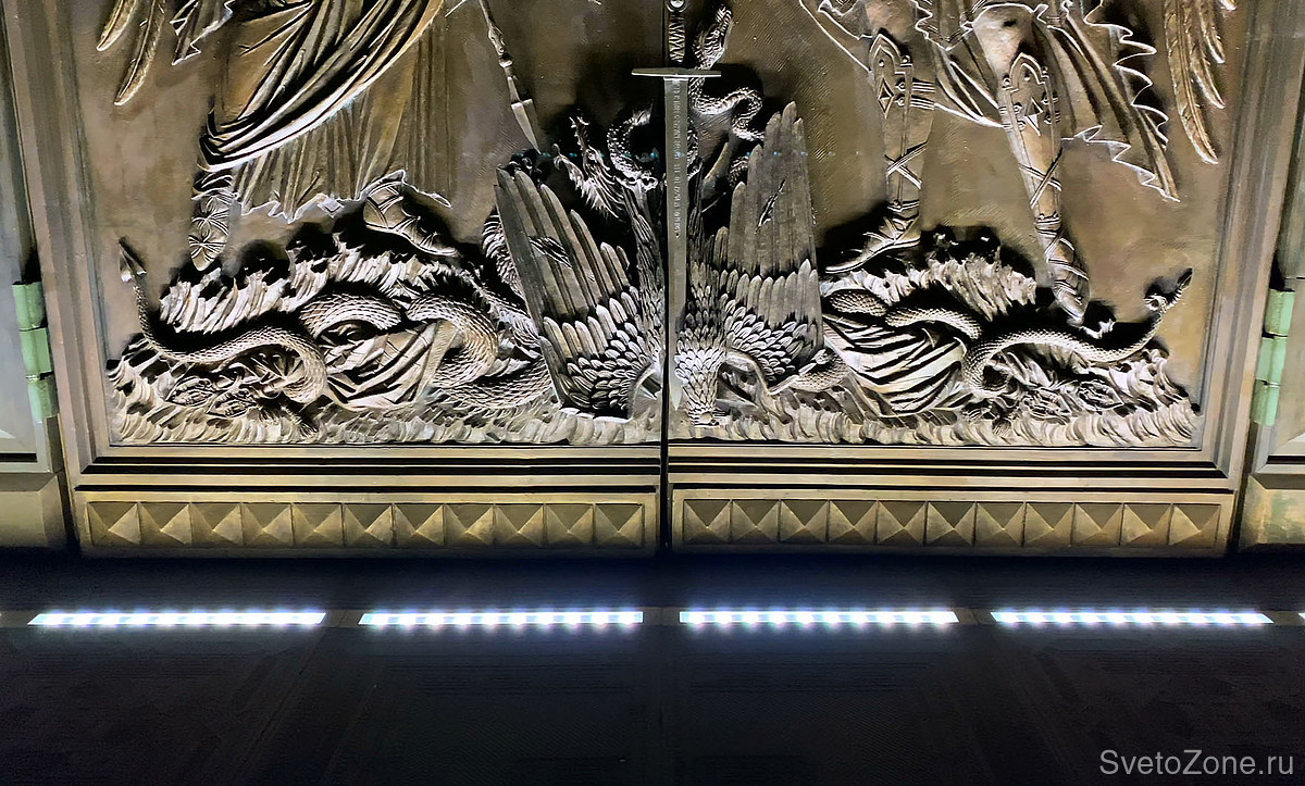 Освещение входных врат, выполненных со столь высоким уровнем профессионализма и по праву являющихся произведением искусства, а в будущем возможно и исторической ценностью, стало сложнейшей нетривиальной задачей. Высокая планка, заданная мастерами скульптуры, определила требования к качеству работы художников по свету и инженеров светотехников.