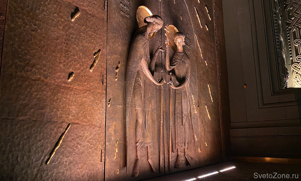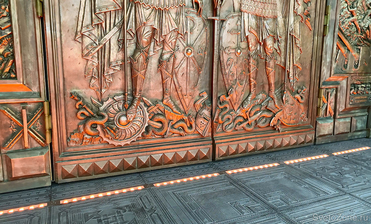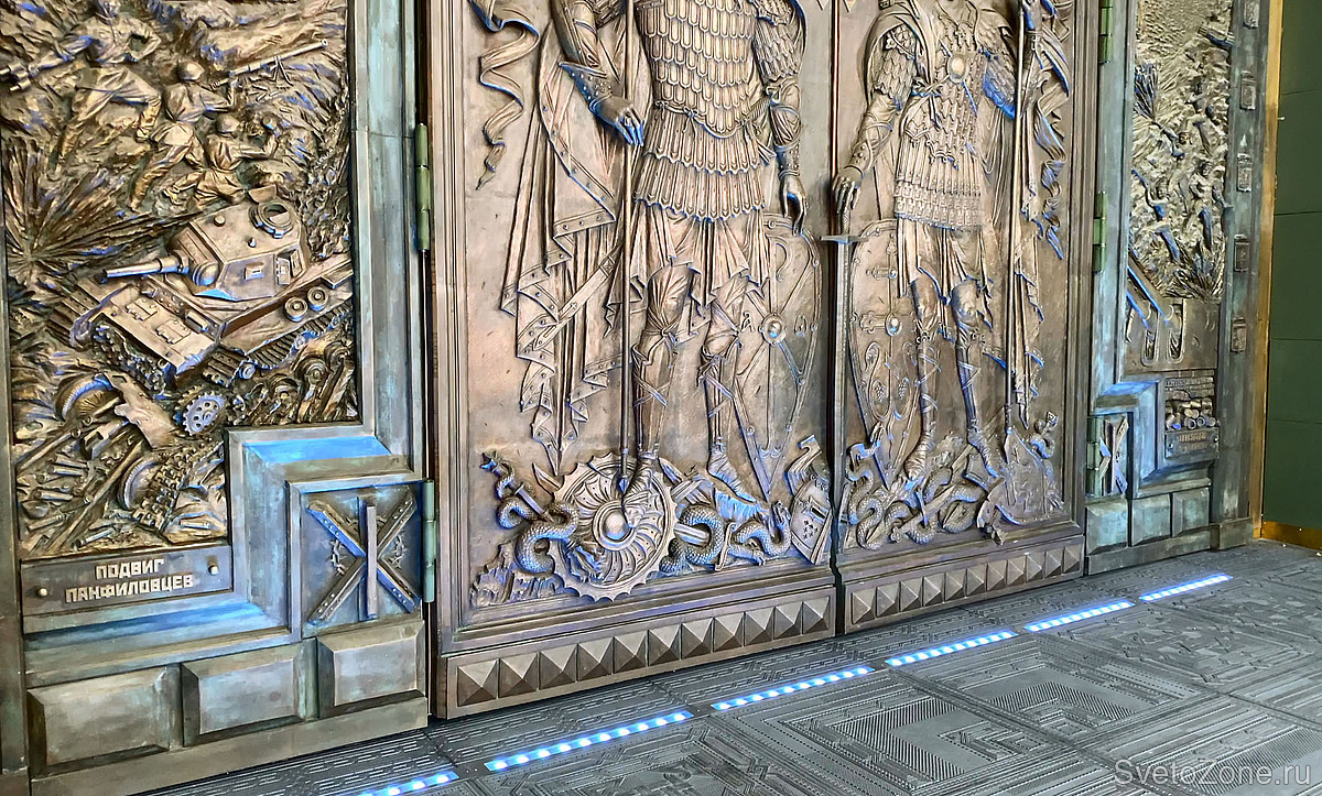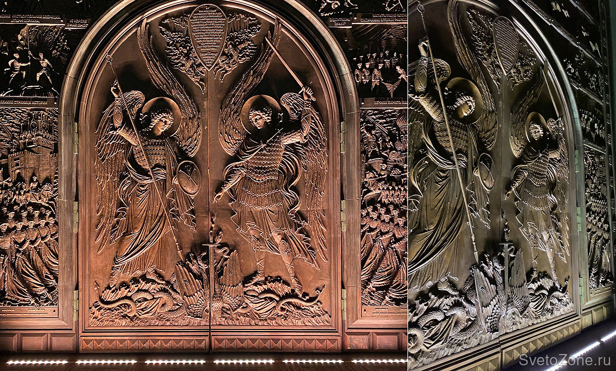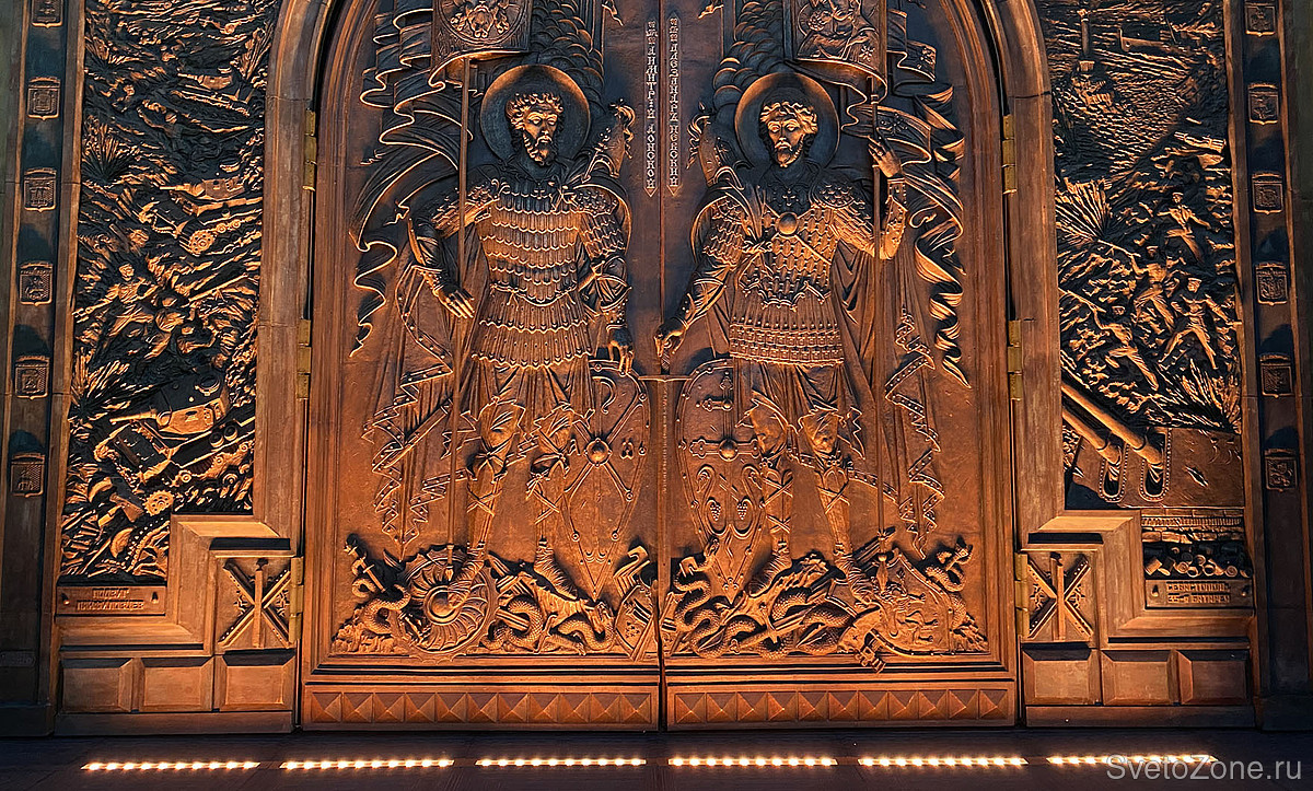 Освещение входных врат, выполненных со столь высоким уровнем профессионализма и по праву являющихся произведением искусства, а в будущем возможно и исторической ценностью, стало сложнейшей нетривиальной задачей. Высокая планка, заданная мастерами скульптуры, определила требования к качеству работы художников по свету и инженеров светотехников.