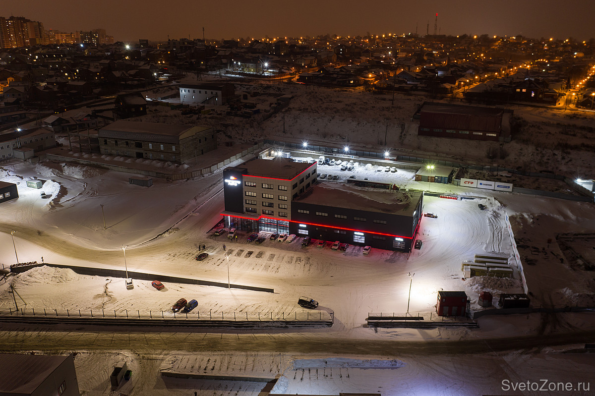 Еще один интересный проект освещения, которым мы хотим поделиться. В конце 2017 года к нам обратились представители автоцентра «Форвард Авто» с просьбой сделать освещение на их трассе. Стояла задача осветить трассу с опор высотой 6 метров.