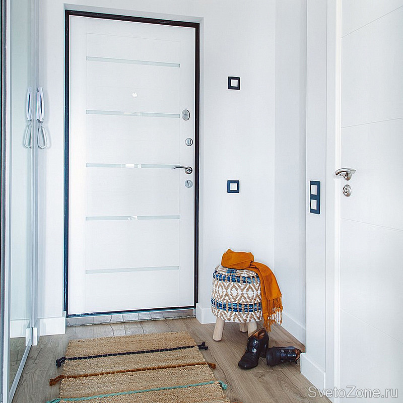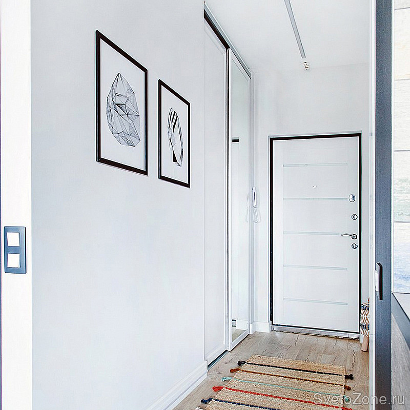 Интересный дизайнерский проект с разноплановым освещением: свет словно растворяется в общем пространстве, позволяя рассмотреть каждую деталь интерьера, любоваться цветными акцентами и безупречными белоснежными поверхностями. В кухне-гостиной установлены мобильные трековые светильники, которые легко перемещаются вдоль шины и регулируют направление света. Все светильники обладают высоким индексом цветопередачи (CRI>90). В коридоре основное освещение реализовано с помощью встраиваемого профиля и светодиодной ленты c теплым белым цветом свечения.