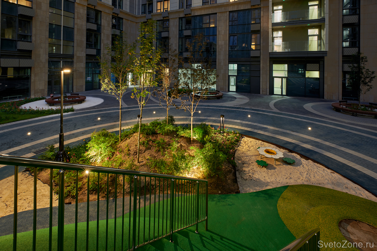 Проект освещения внутреннего двора «Match Point» является отличным примером того, как можно создать атмосферу уюта и тепла, и при этом сохранить облик современного жилого комплекса в большом городе.