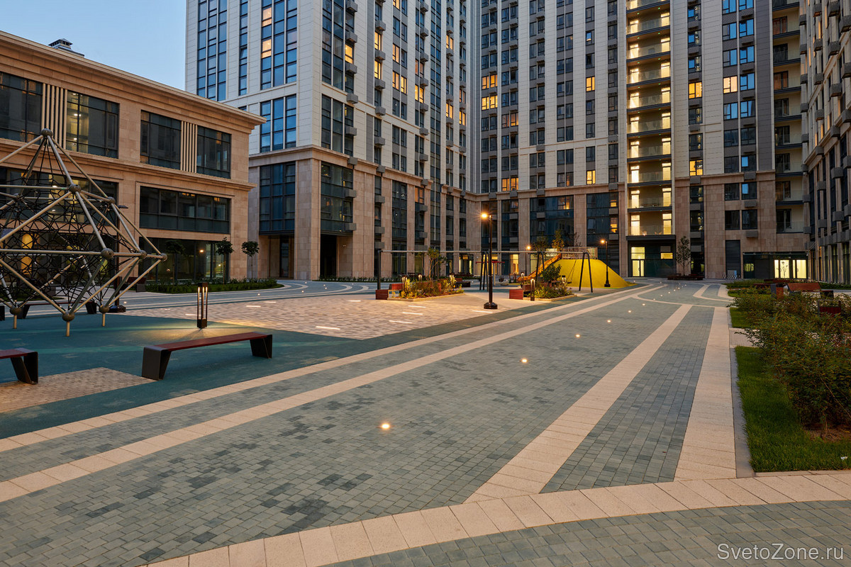 «Match Point» - это новый современный жилой комплекс в Москве. Комплекс состоит из 4 корпусов апартаментов, волейбольной арены и придомовой территории с внутренним двором и игровыми площадками. Светильники Ledvizor помогли в благоустройстве внутреннего двора жилого комплекса.
